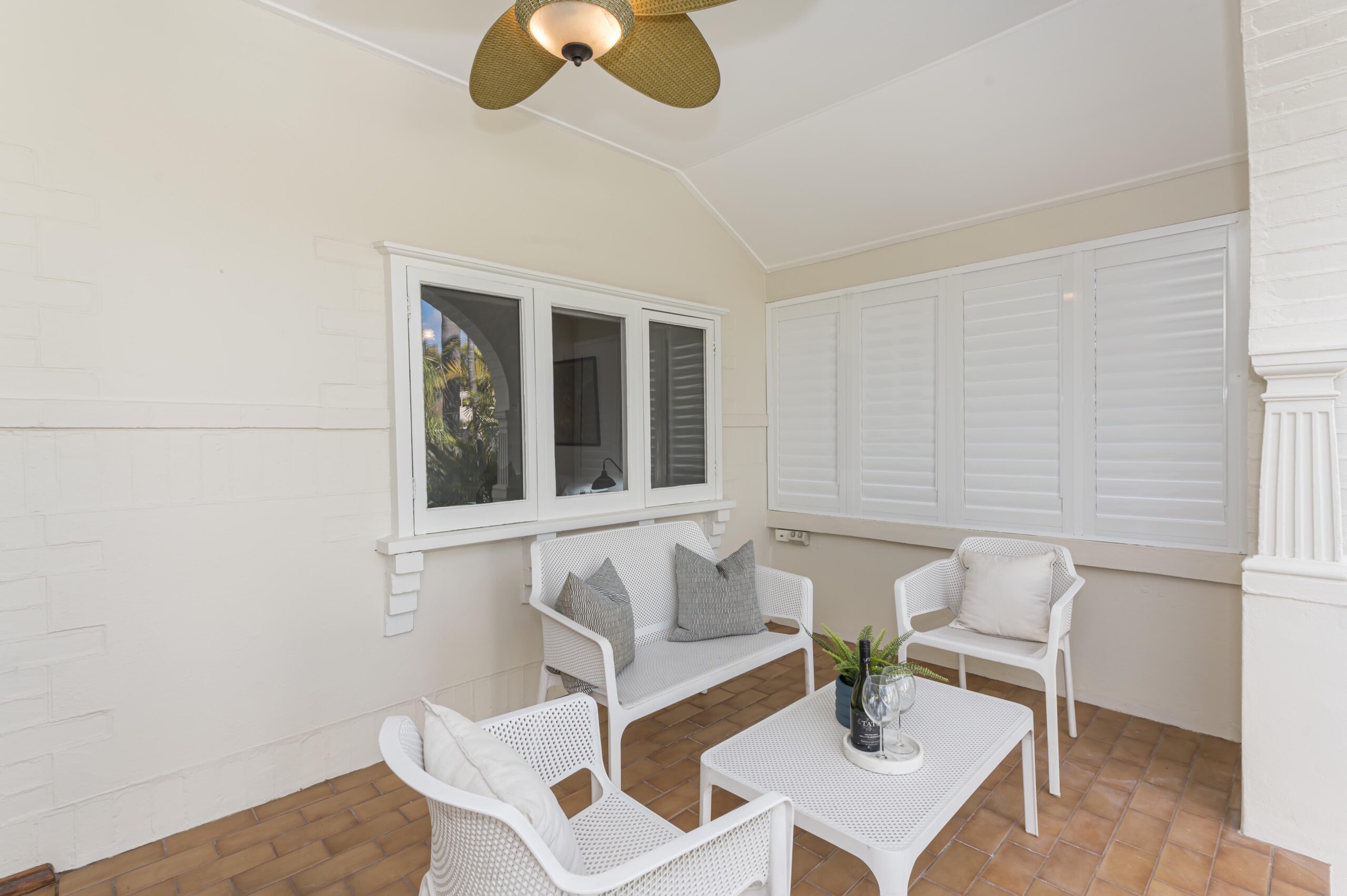 Beautiful portico/alfresco area, ideal entertaining area with ceiling fan and TV
