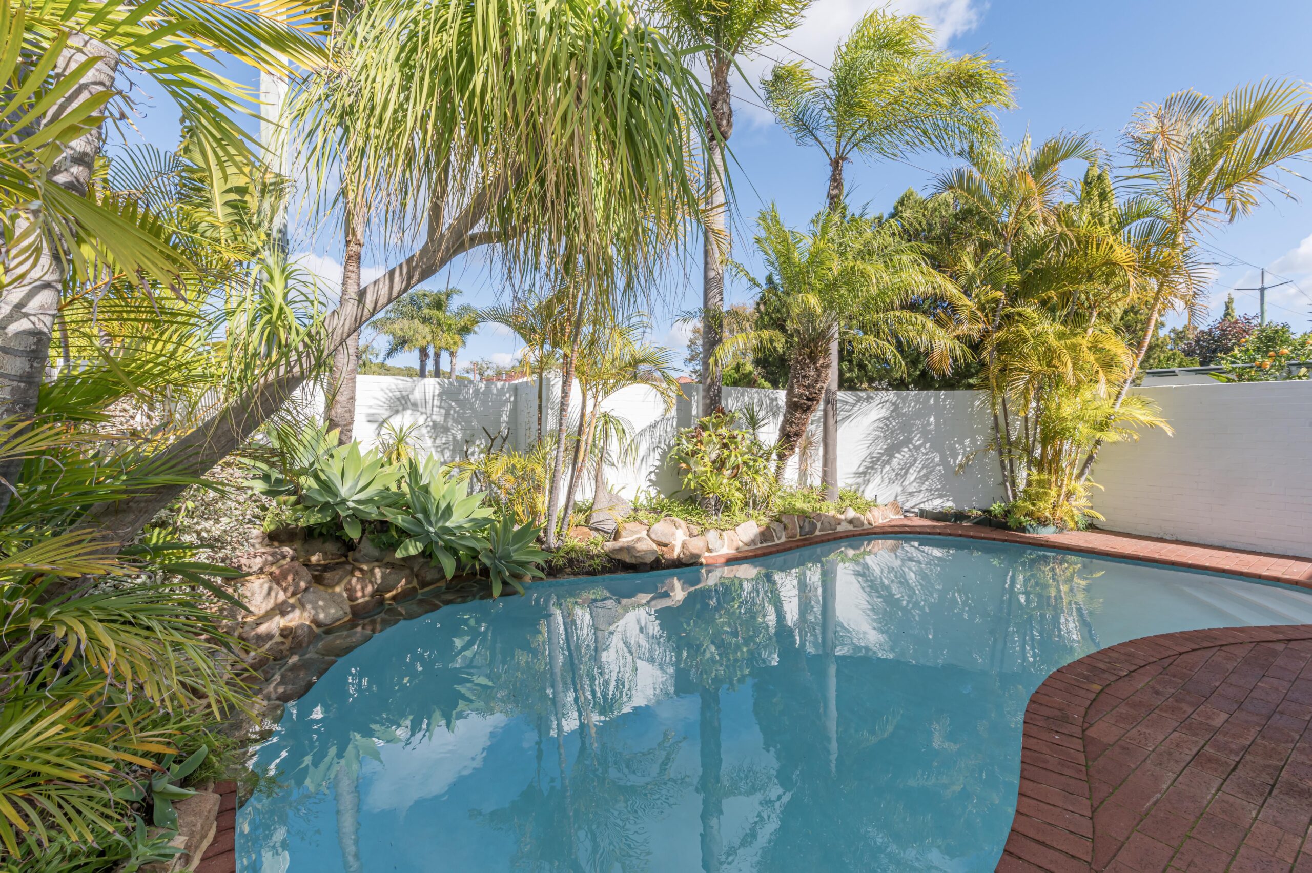 Inground salt water pool with paved entertaining area