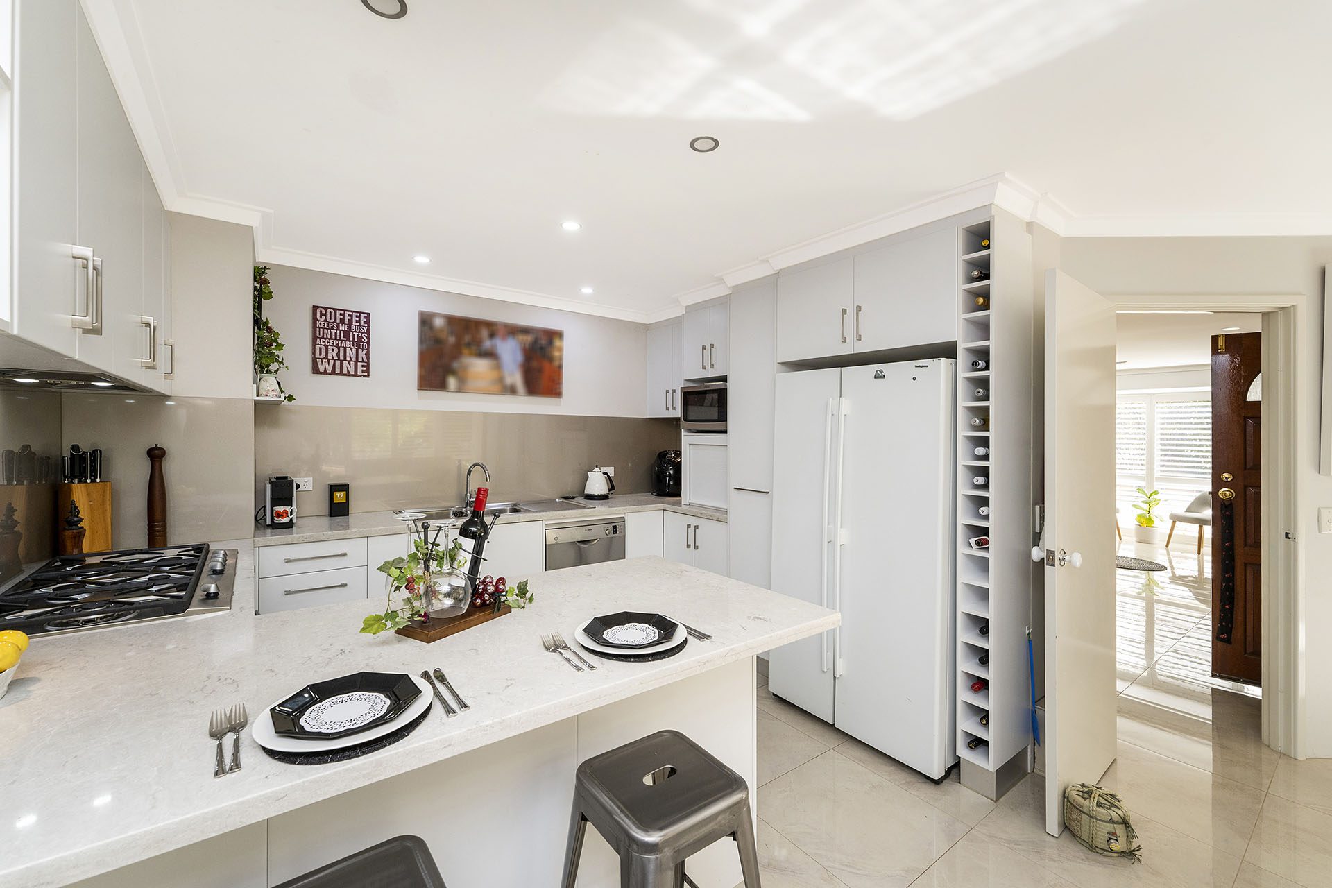 As you enter into this home straight away you will be blown away by the beautiful and spacious garden area, including a lemon and lime tree. With space for all your favourite fruits and vegetables. Additionally, in the outdoor area you will find a lovely undercover patio area and veranda where friends can come over and enjoy a glass of wine or two while the kids play around in the garden.