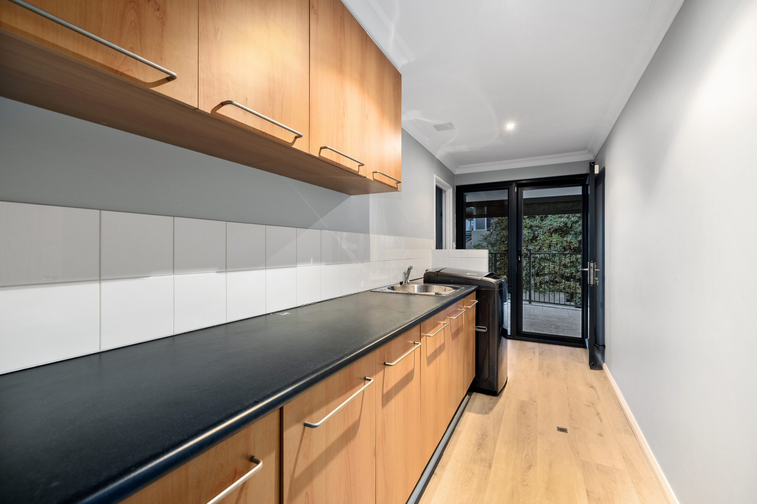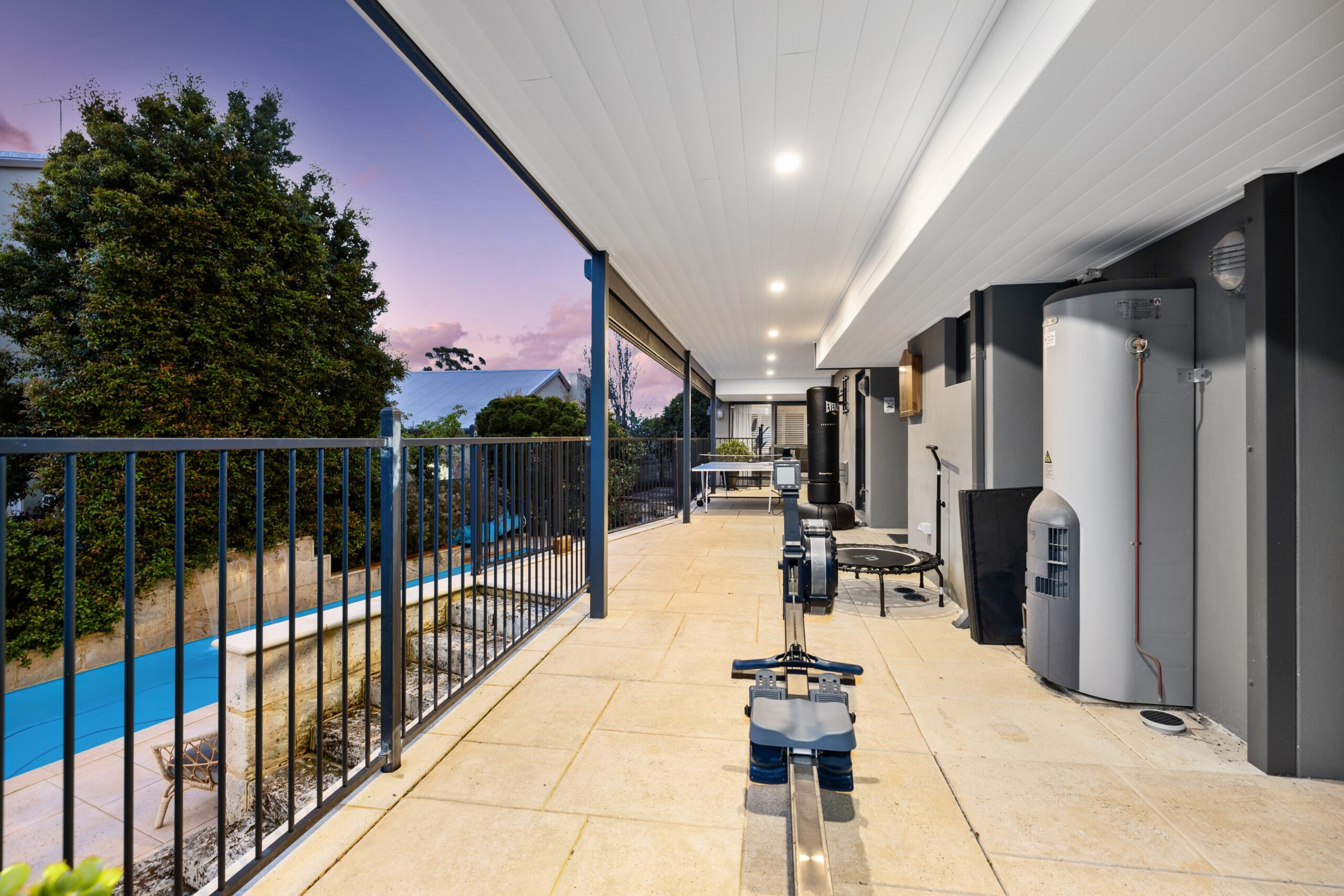 Downstairs the accommodation is thoughtfully configured for privacy and comfort. There is a secondary living room (with kitchenette) to the right of the stairs a perfect space for teenage independence. The living room also has access to the elevated rear verandah overlooking the pool below. Each secondary bedroom is OVERSIZED and includes built-in storage, garden outlooks, access to a central bathroom, with bath, vanity and shower with a separate WC. There is also a large linen press behind floor to ceiling sliding doors. A dedicated study nook located to the left of the entrance provides flexibility for remote work or homework. There is also another bedroom with a fireplace, built-in robes and with access to the rear verandah.