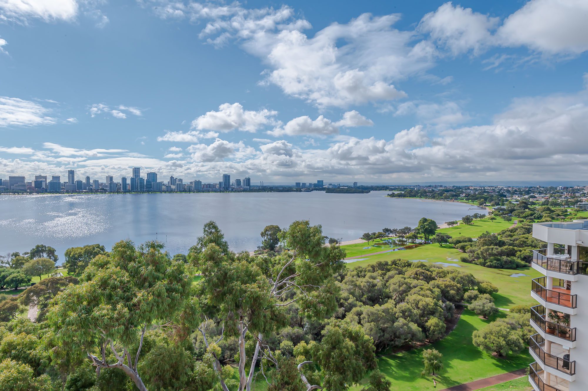This tenth floor apartment has stunning north facing City and River views, perfect for observing all the activities on Sir James Mitchell Park and daily sunsets from your private balcony.