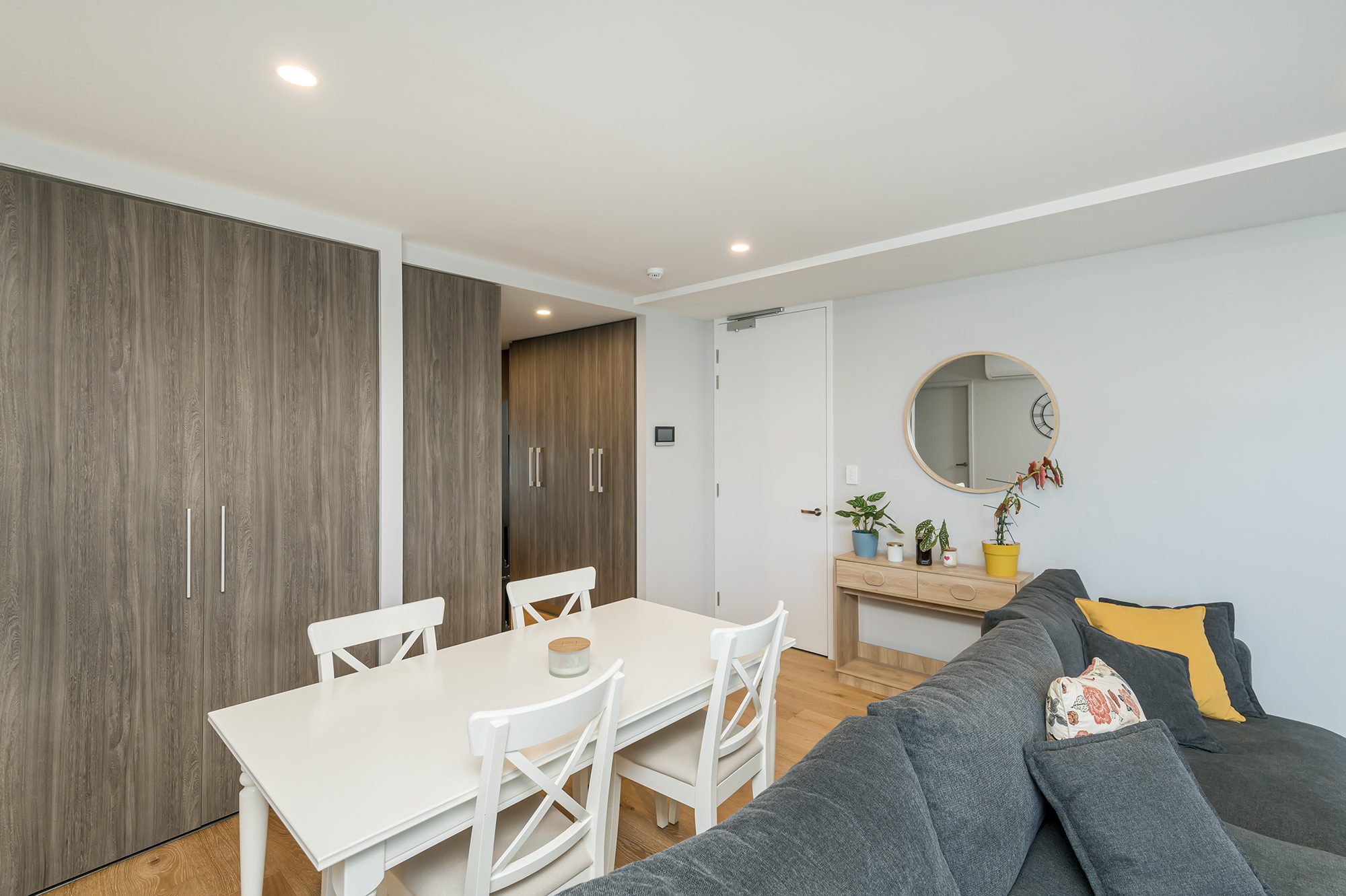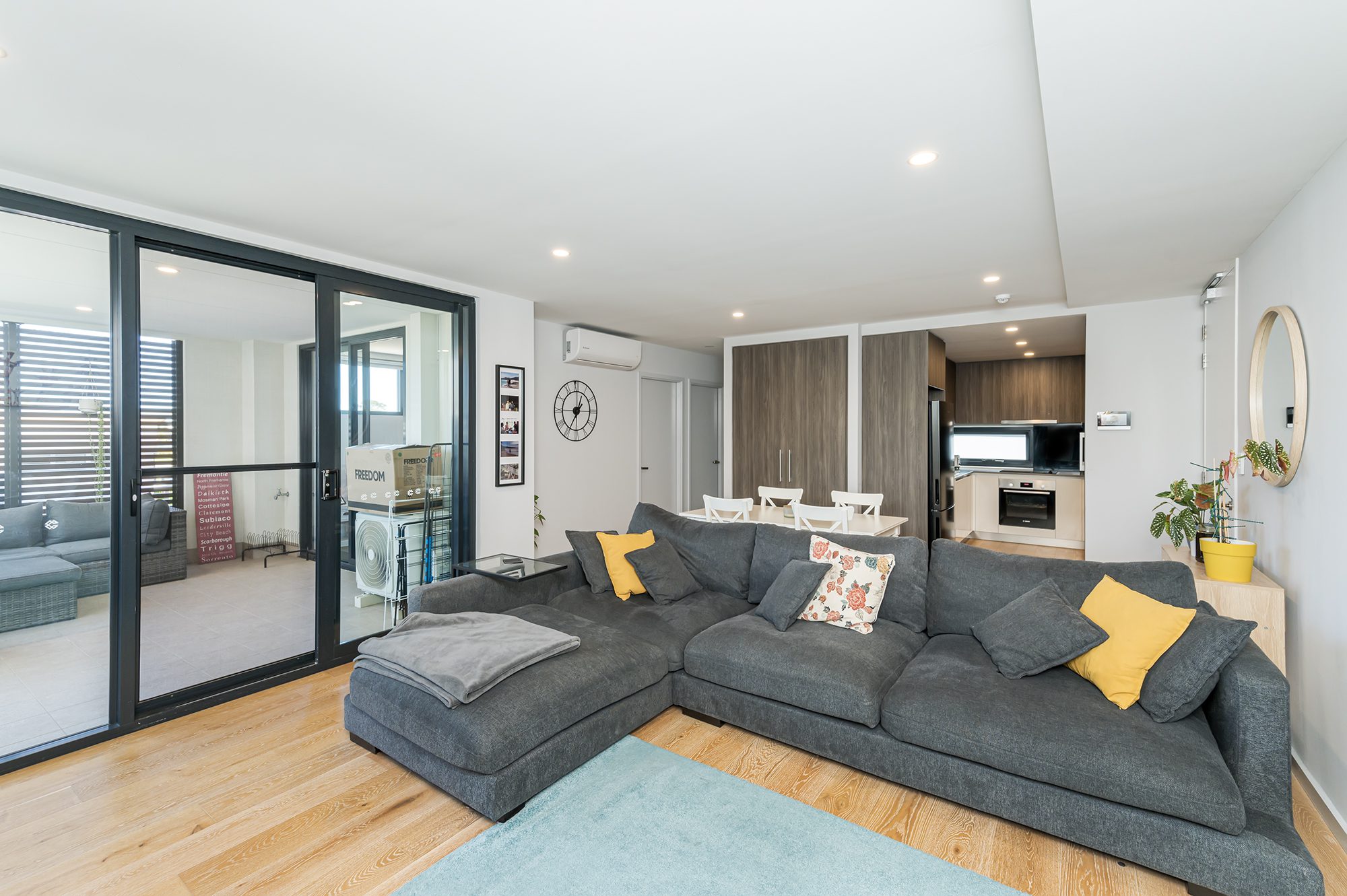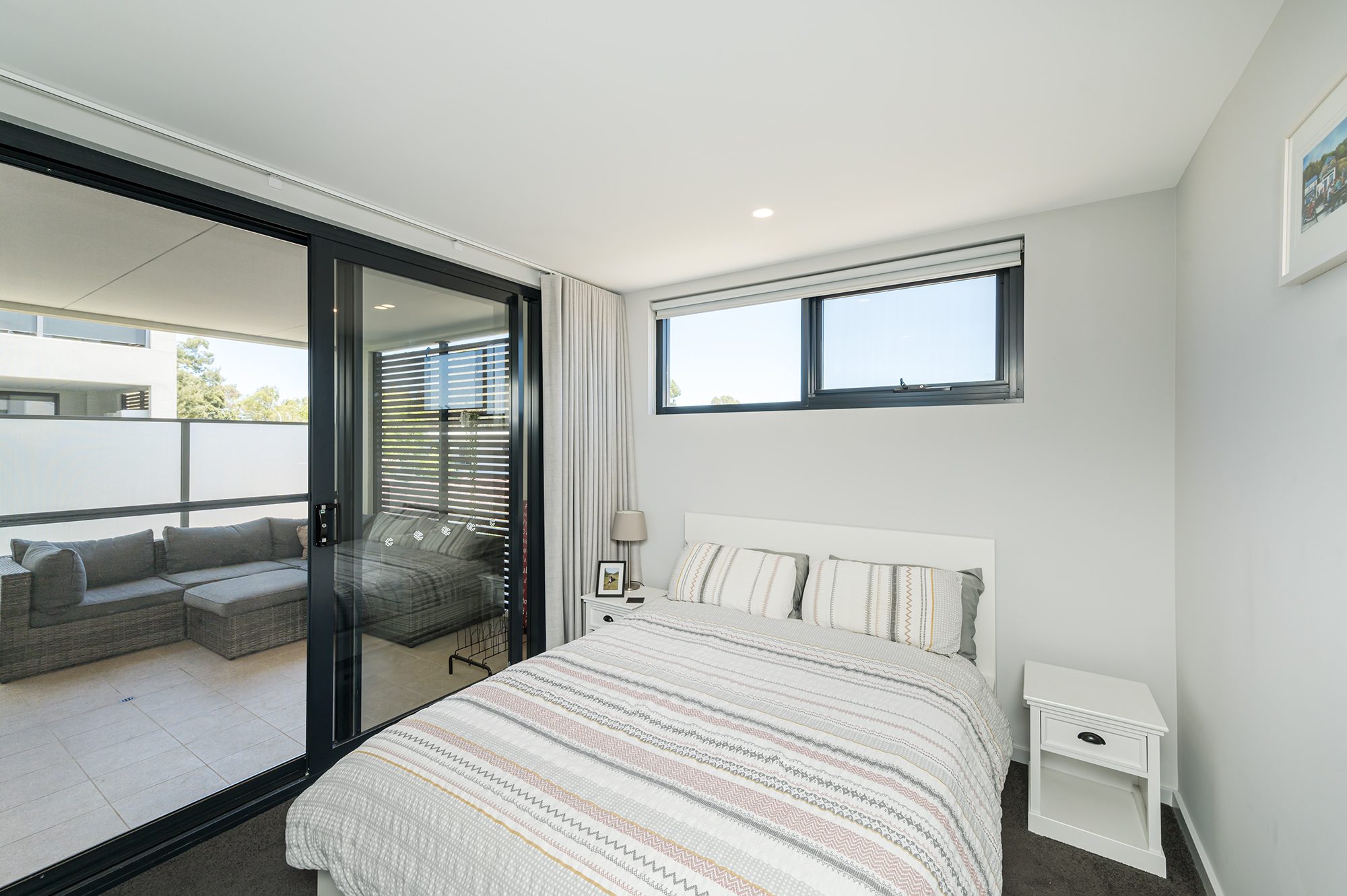 Located in a secure complex, this modern apartment has reverse cycle A/C, a modern kitchen and bathroom with soft closing cabinetry, large balcony, a discreet laundry nook and LED lights throughout.