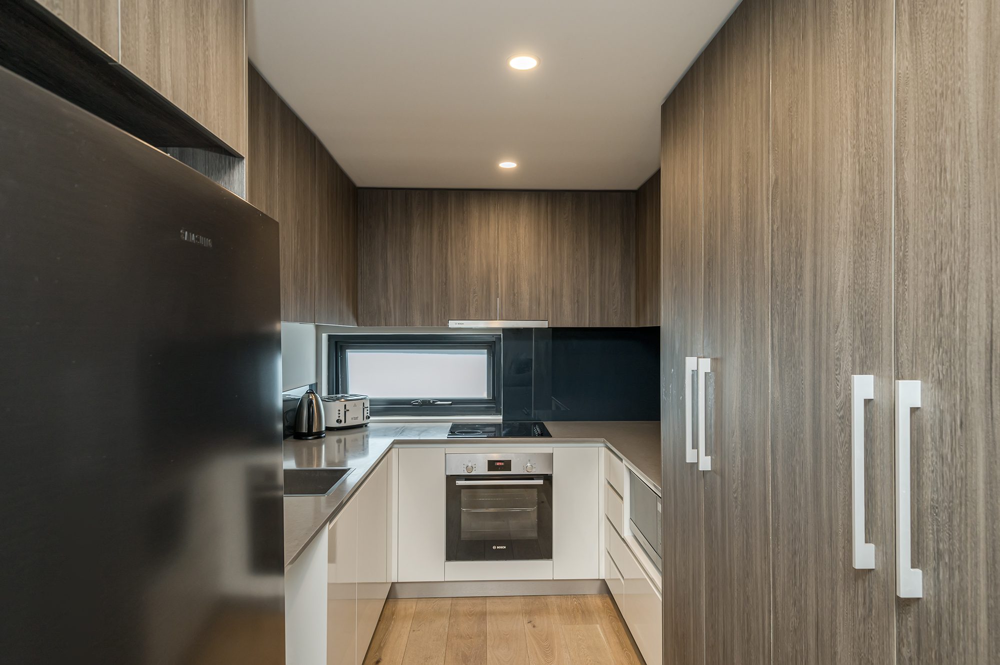 There is ample cupboard space in the open plan kitchen/living area.
