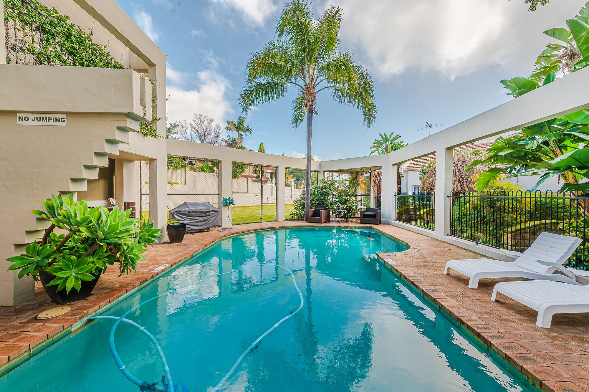 A most unique townhouse set in a secure, leafy green development, complete with waterfalls, ponds and lush green gardens, tennis court and pool with attractive surrounds.