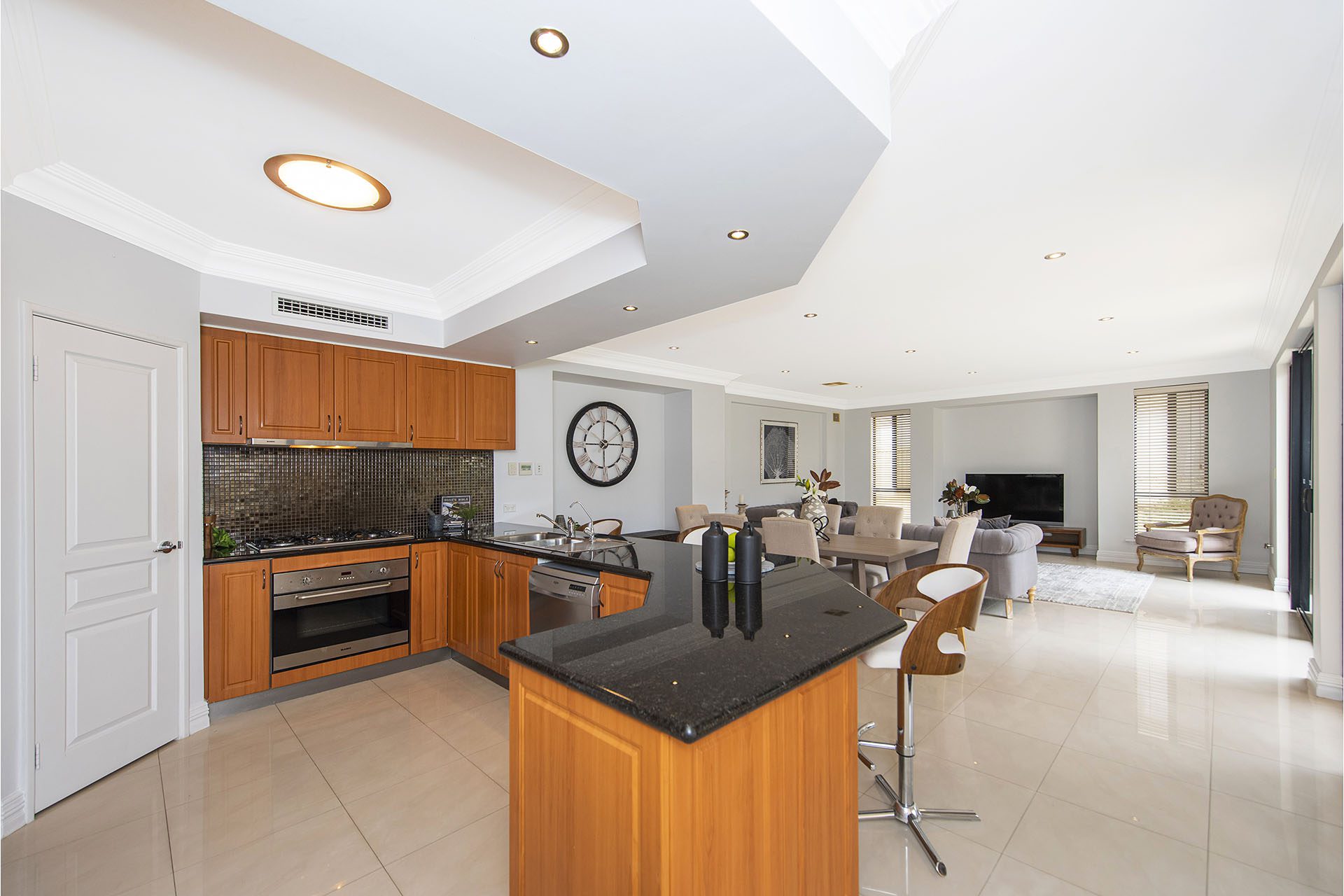 Cook up a storm for family and friends in the kitchen (which has granite bench tops) overlooking the dining/family room out to the outdoor cedar lined roof of the entertaining area.