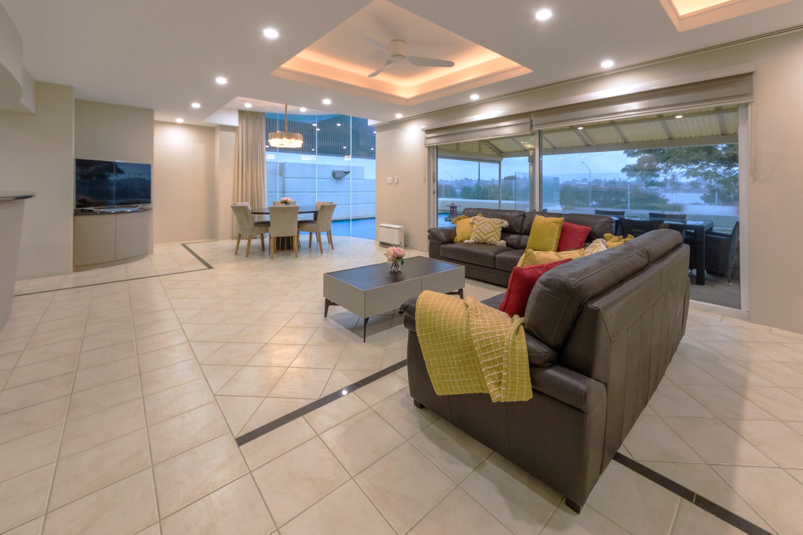 • Tranquil open plan living and dining area refreshing pool and views of the river