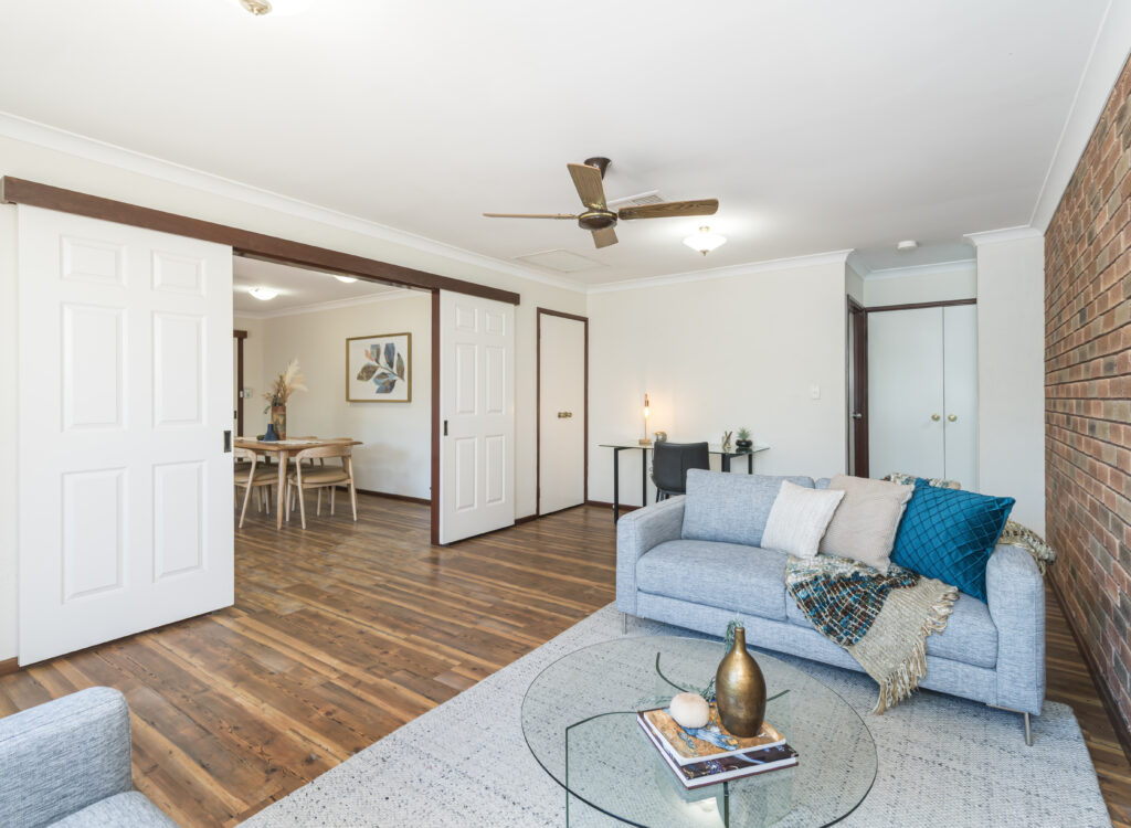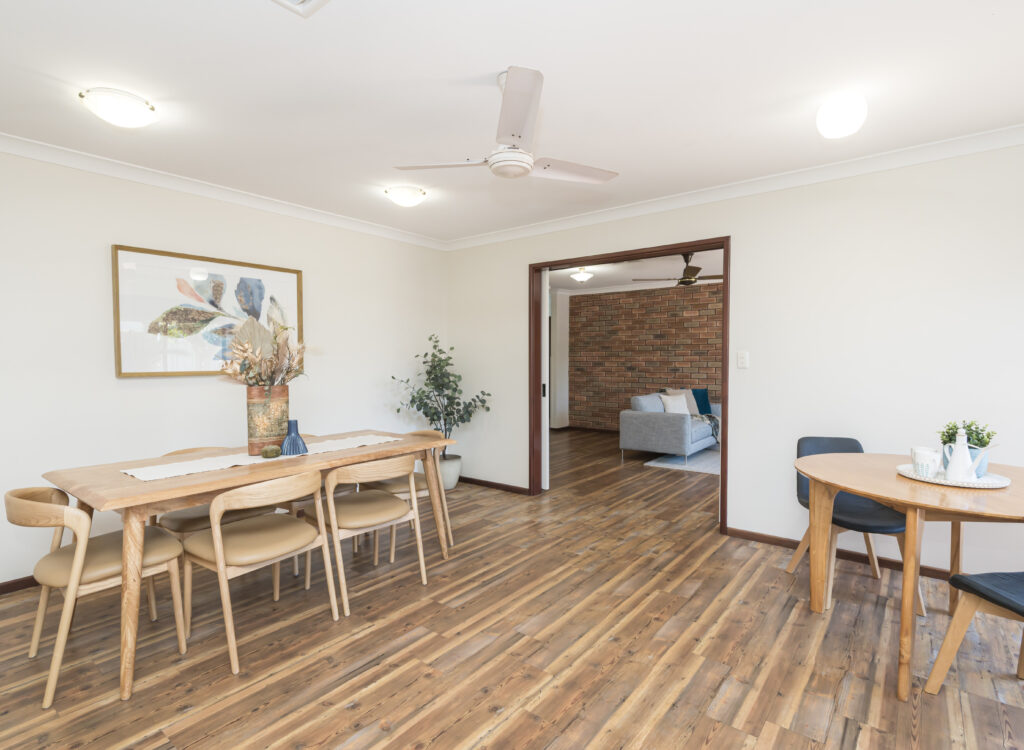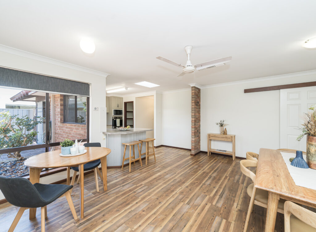 The dining room is open plan perfect for entertaining guests or for large families, the open meals area flows through to a second living space or games room. You can open this versatile space to the dining room or using the sliding doors create privacy to the front and rear of the home, great for families when the kids are being a bit loud.