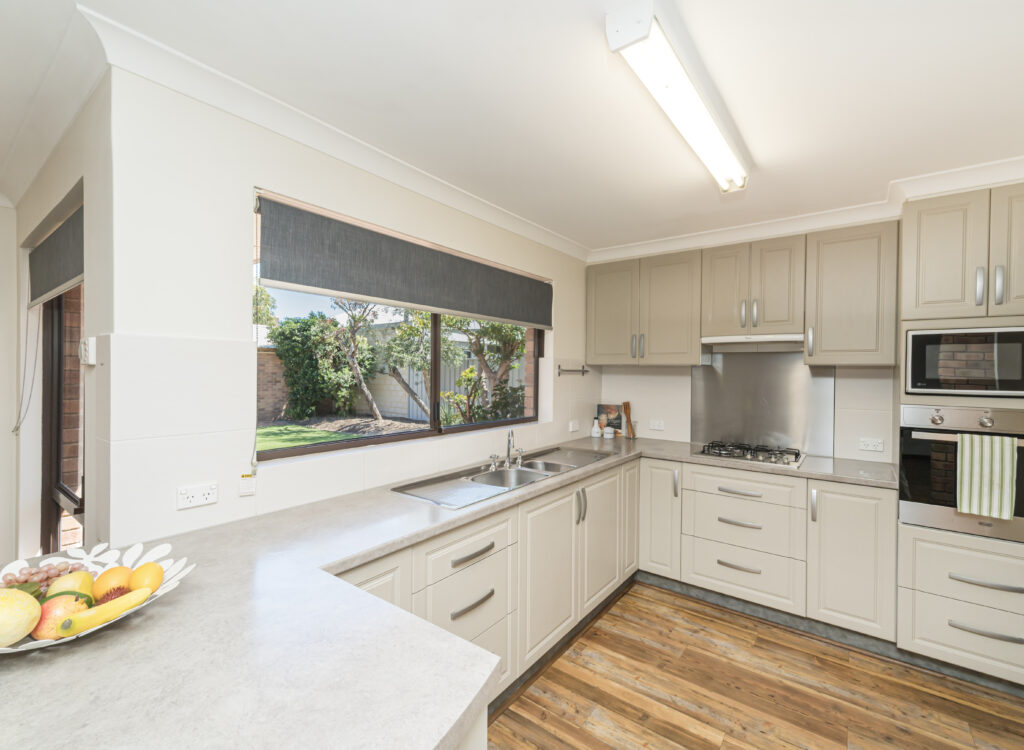 As you walk to the veranda and enter into this family home you will find the spacious front lounge area which looks out to the native gardens. To the right of the entry is a space that can be utilised as a home office, nursery or guest bedroom. The kitchen is well positioned and very well kept with plenty of cupboard and bench space. The kitchen includes a breakfast bar, walk in pantry and huge rear facing window to backyard.