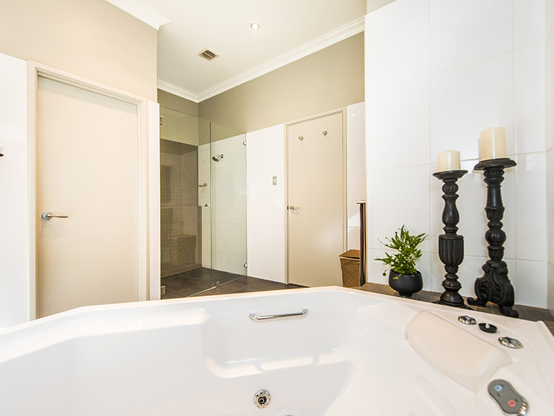 A spacious master suite is ideally located on the ground floor with large windows looking out to a private front courtyard. It has a walk-in robe, and stylish ensuite featuring double vanity, spa bath, separate shower and adjoining separate powder room.