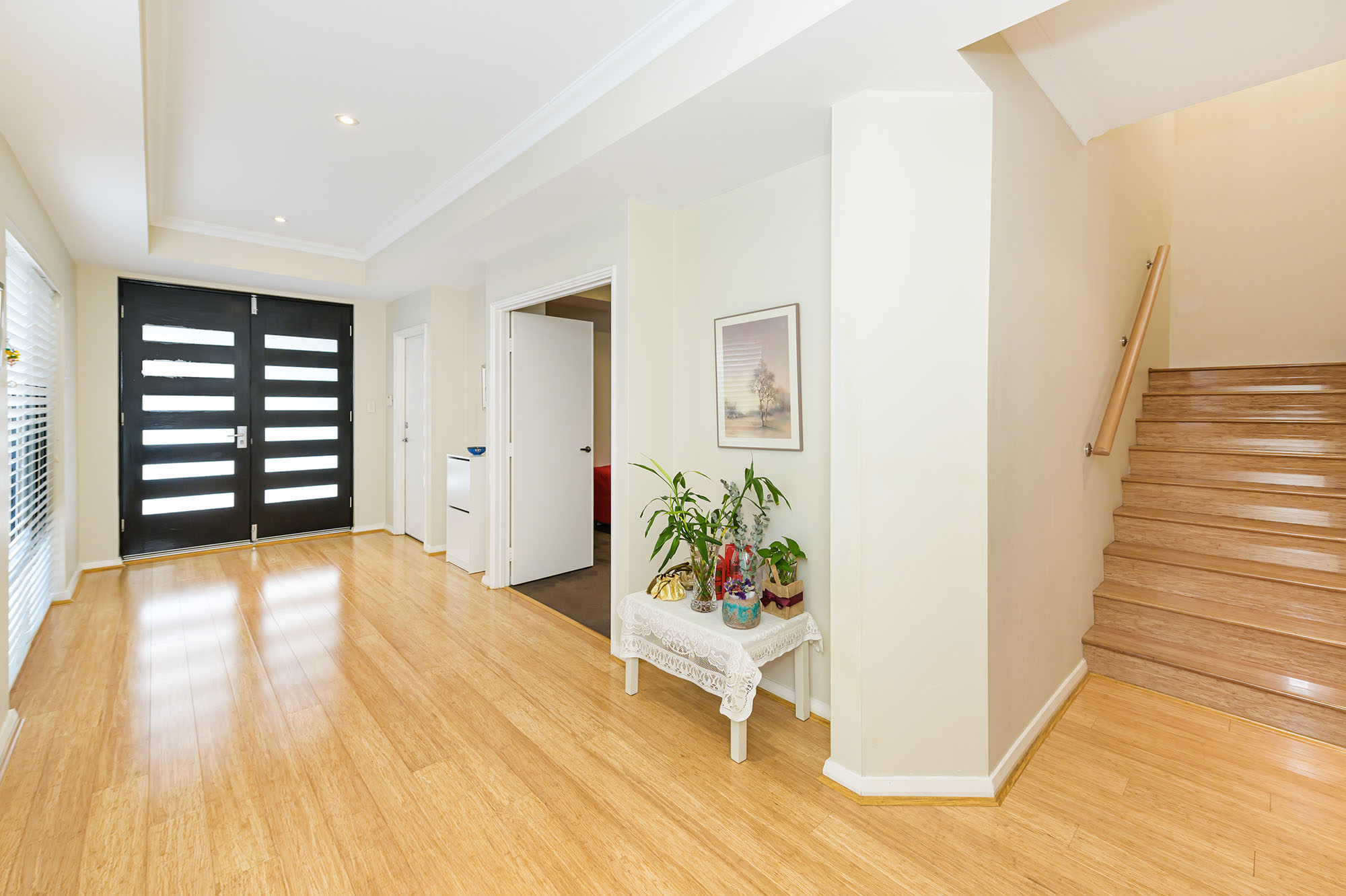 Upstairs, the home features a private sitting/TV room, a luxurious master suite with walk in robes and ensuite. The two minor bedrooms are spacious and are fitted with built in robes. The central bathroom has floor to ceiling tiles and offers a bath, separate shower and powder room.