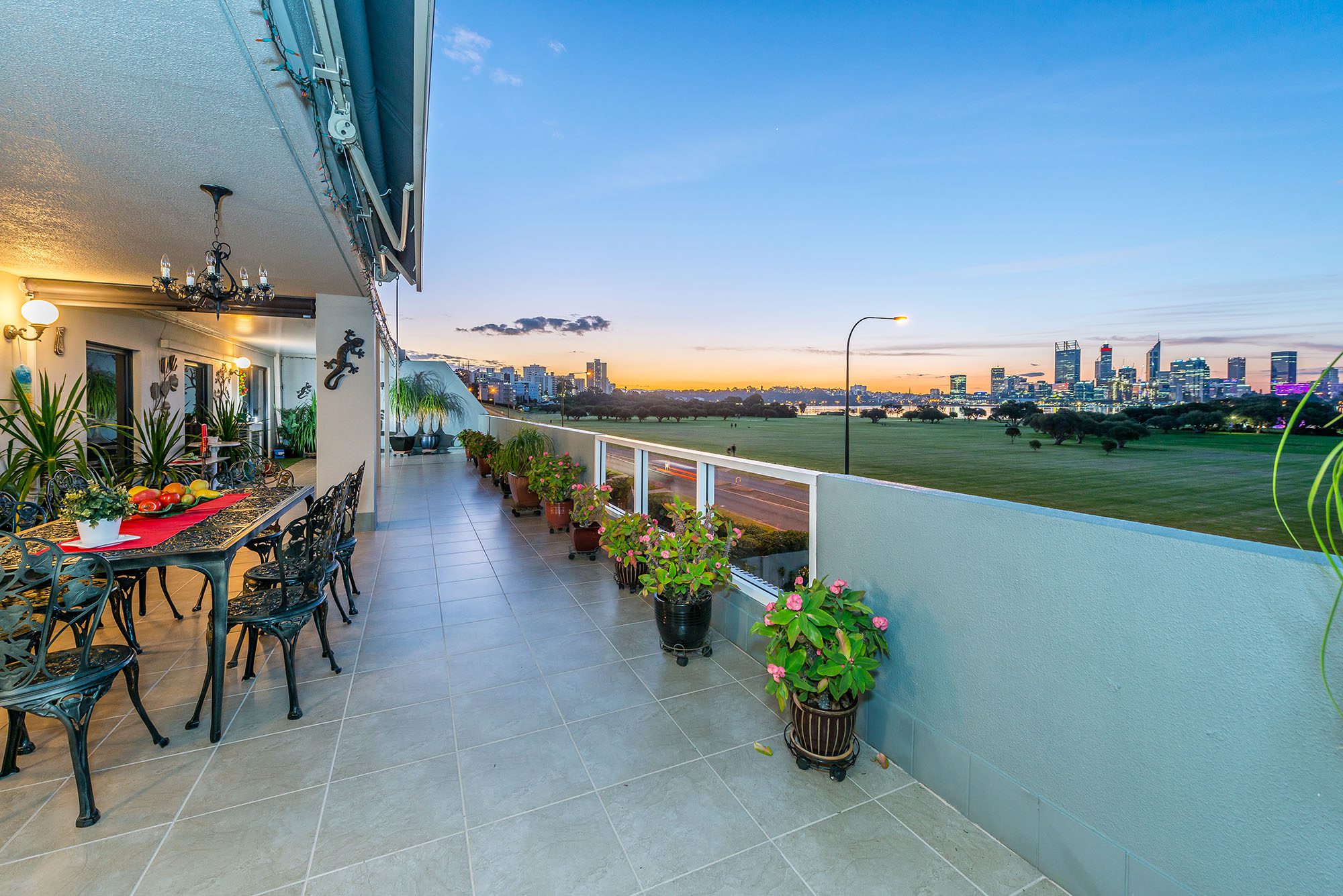 This stunning three bedroom apartment is situated across from Sir James Mitchell Park and only a few minutes’ walk to Angelo and Mends Street shopping precincts. Sunningdale Apartments boasts breathtaking uninterrupted views across the foreshore parklands, Swan River, Perth CBD, Kings Park, Optus stadium and the Darling Ranges.