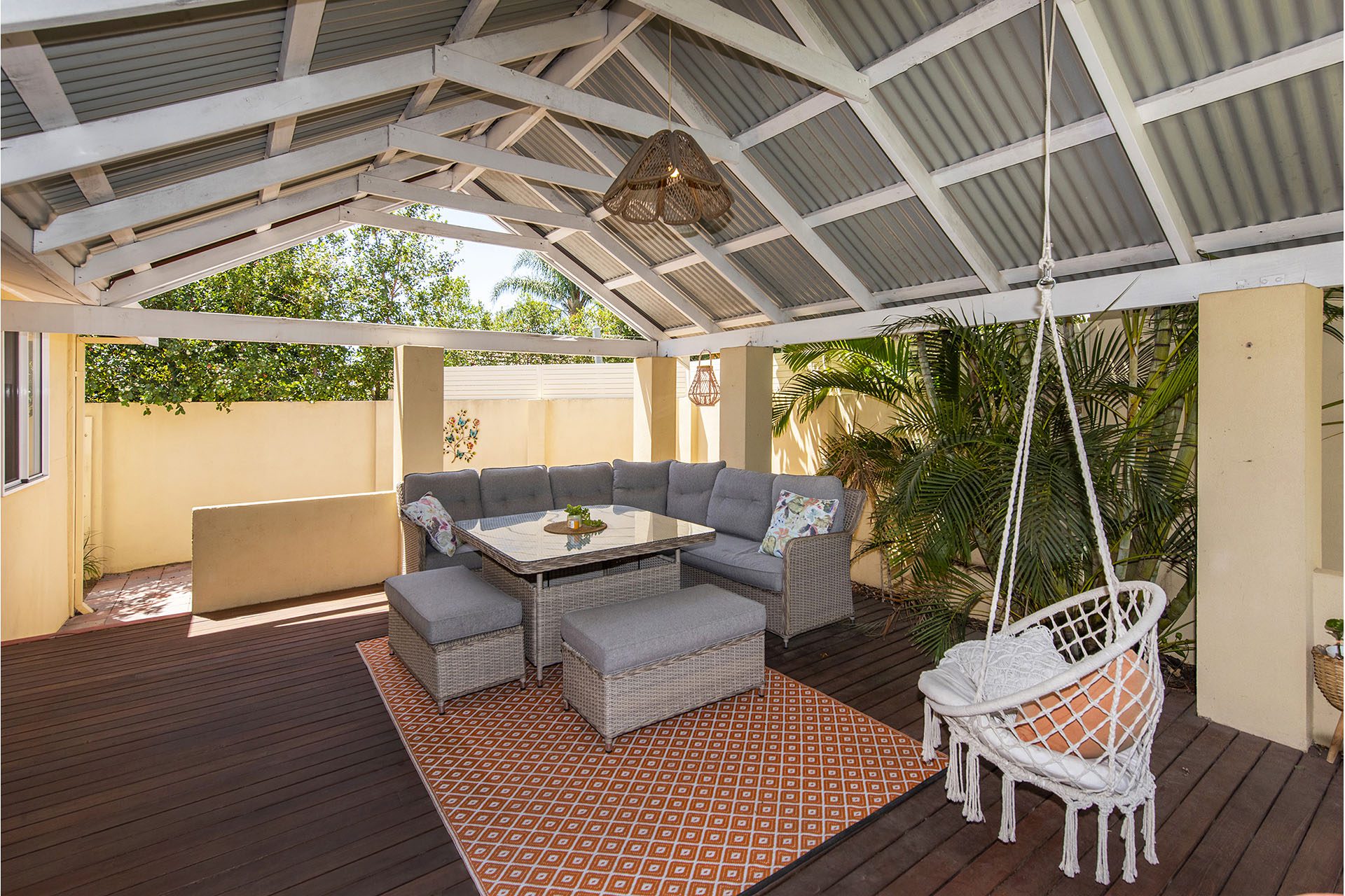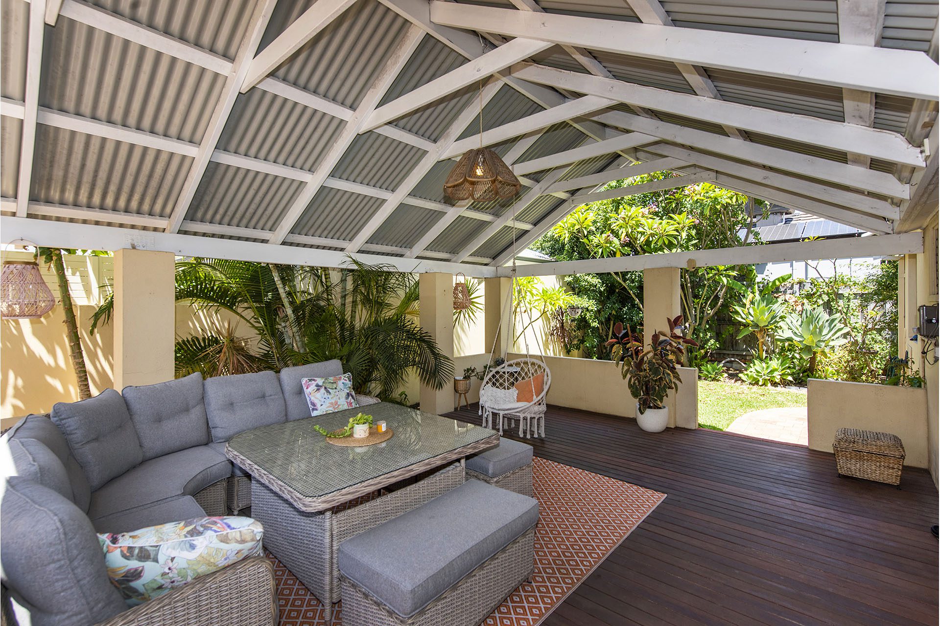 Sliding doors open out to the decked undercover patio with a tropical feel garden. An ideal spot for outdoor entertaining.