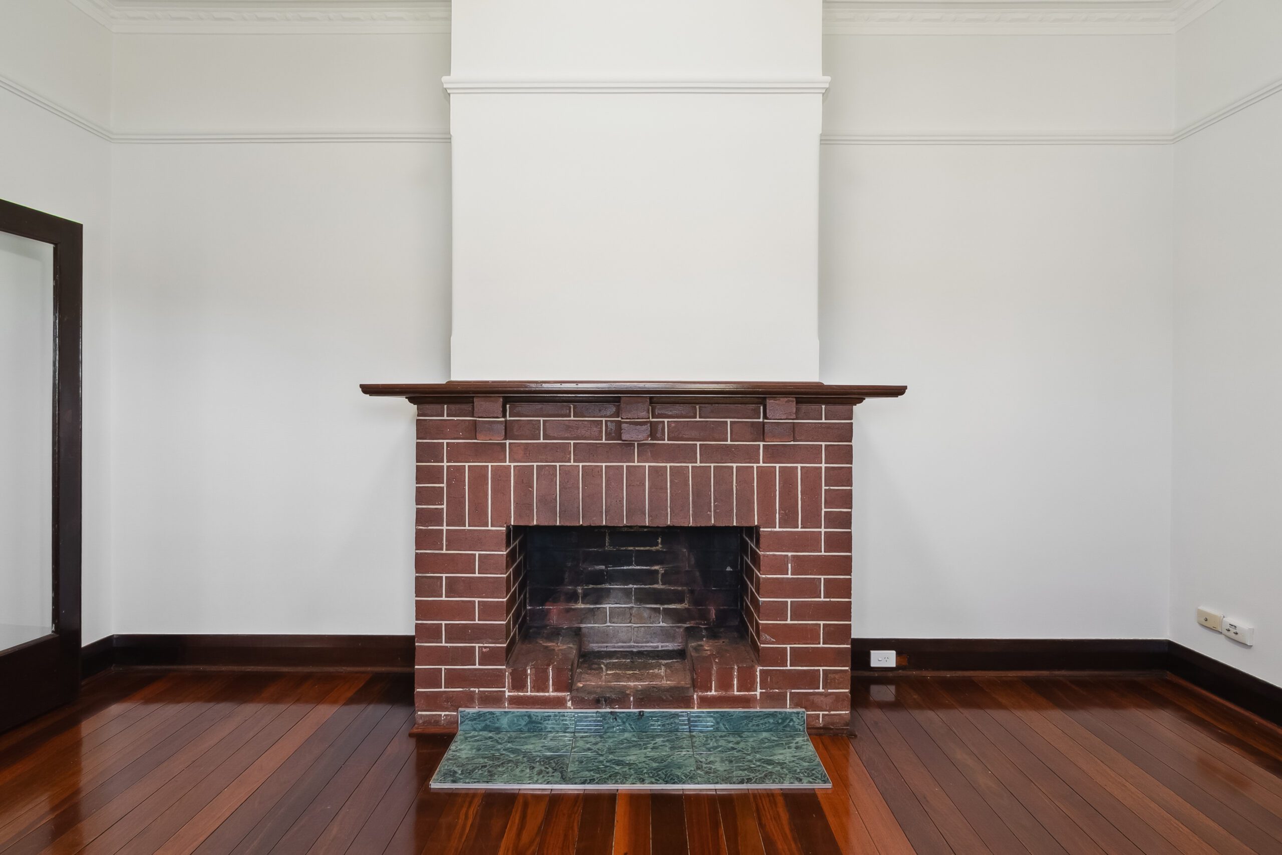 • Living Spaces: The cozy living room features an original fireplace, ornate ceiling details, and picture rails-an inviting space for relaxing or entertaining.