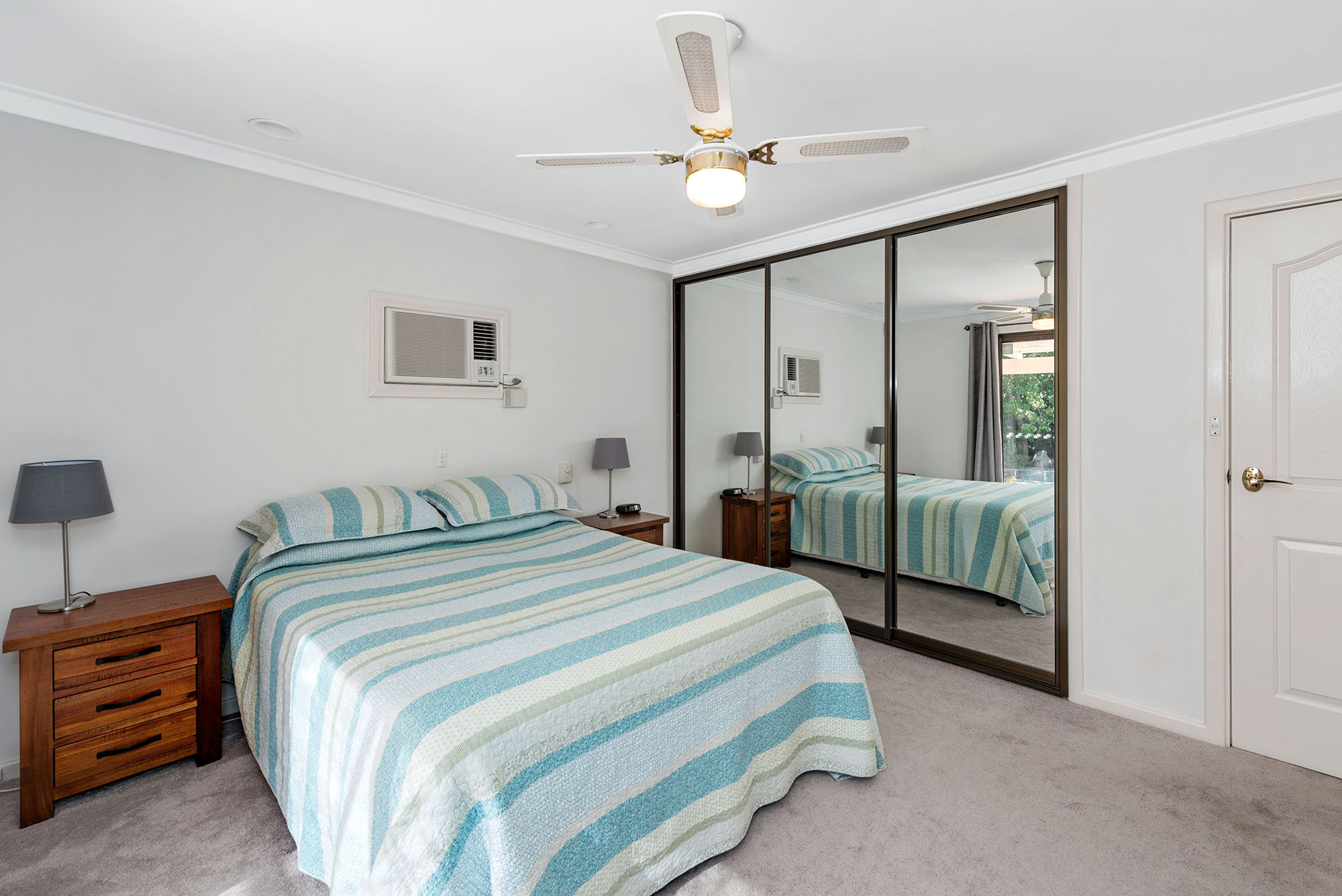 – Generously sized master bedroom with poolside access, A/C and renovated, double vanity ensuite bathroom