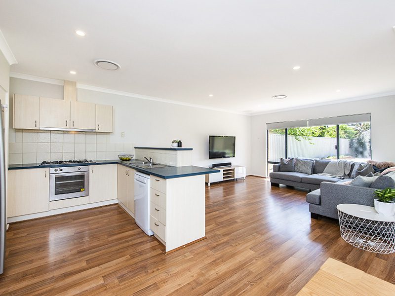 Downstairs is composed of a spacious open plan kitchen with quality appliances adjoining a living and dining area. The dining area flows out to an entertainer’s patio overlooking a north facing rear yard with plenty of lawn for the kids to play and easy care gardens.