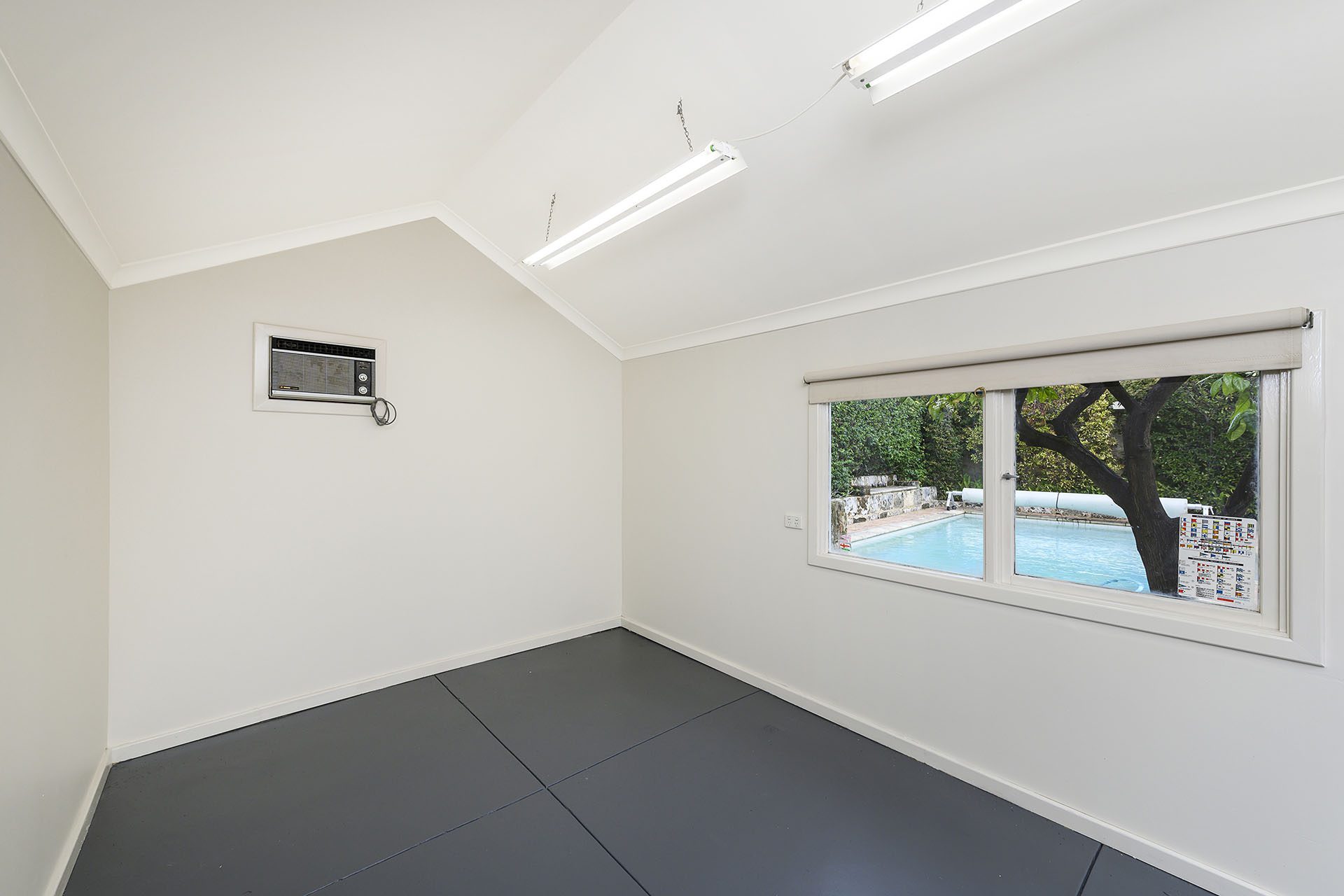 At the rear of the home is the sunken living room, informal dining room with access to the backyard and below ground swimming pool and studio/guest room.