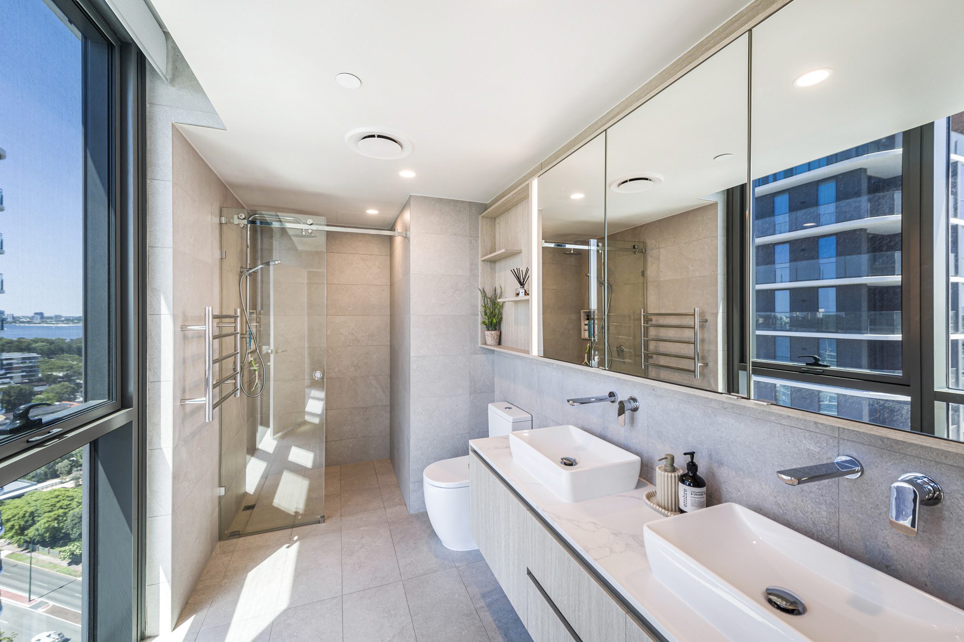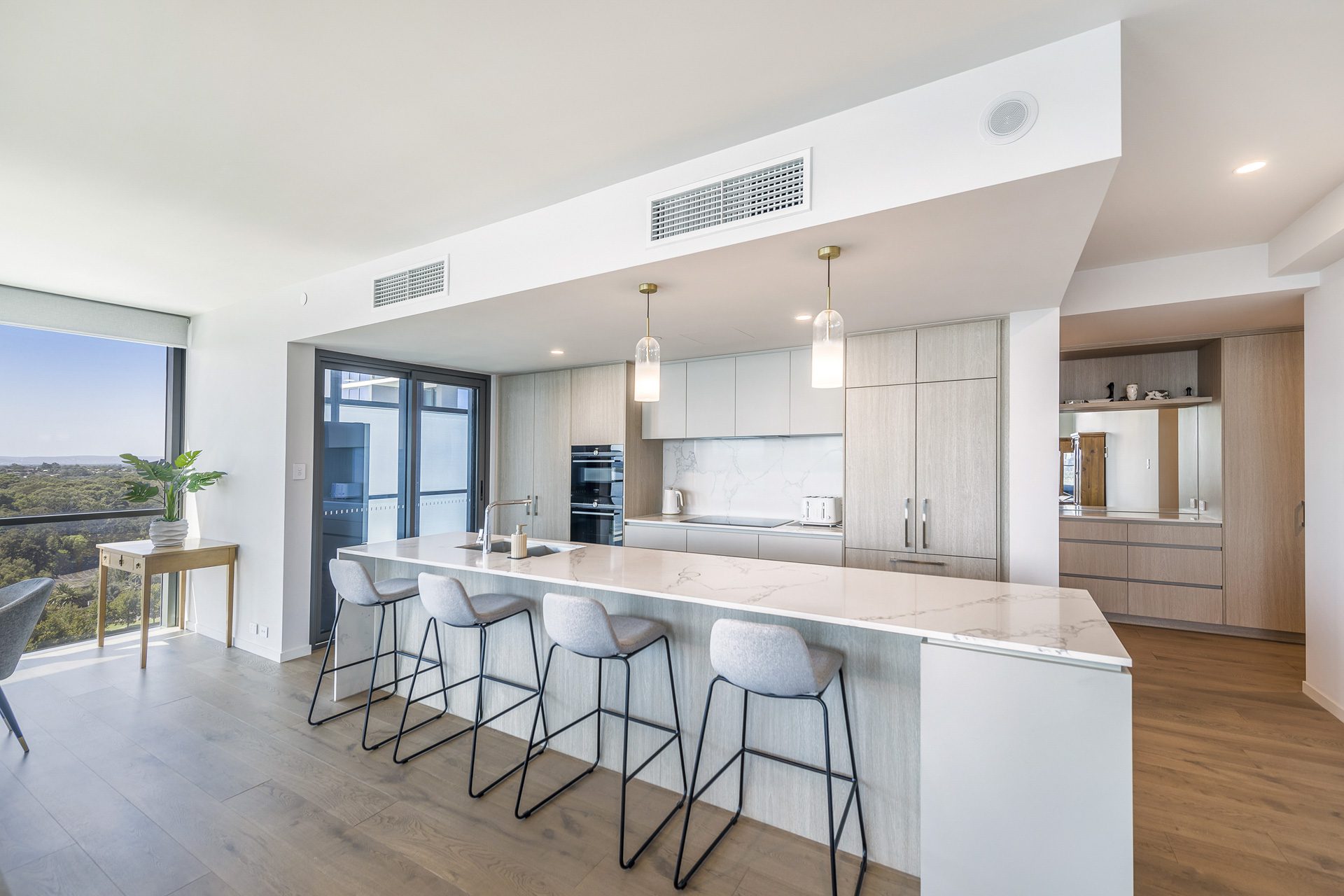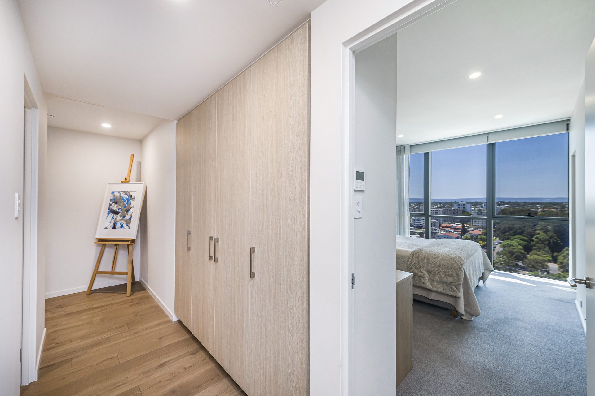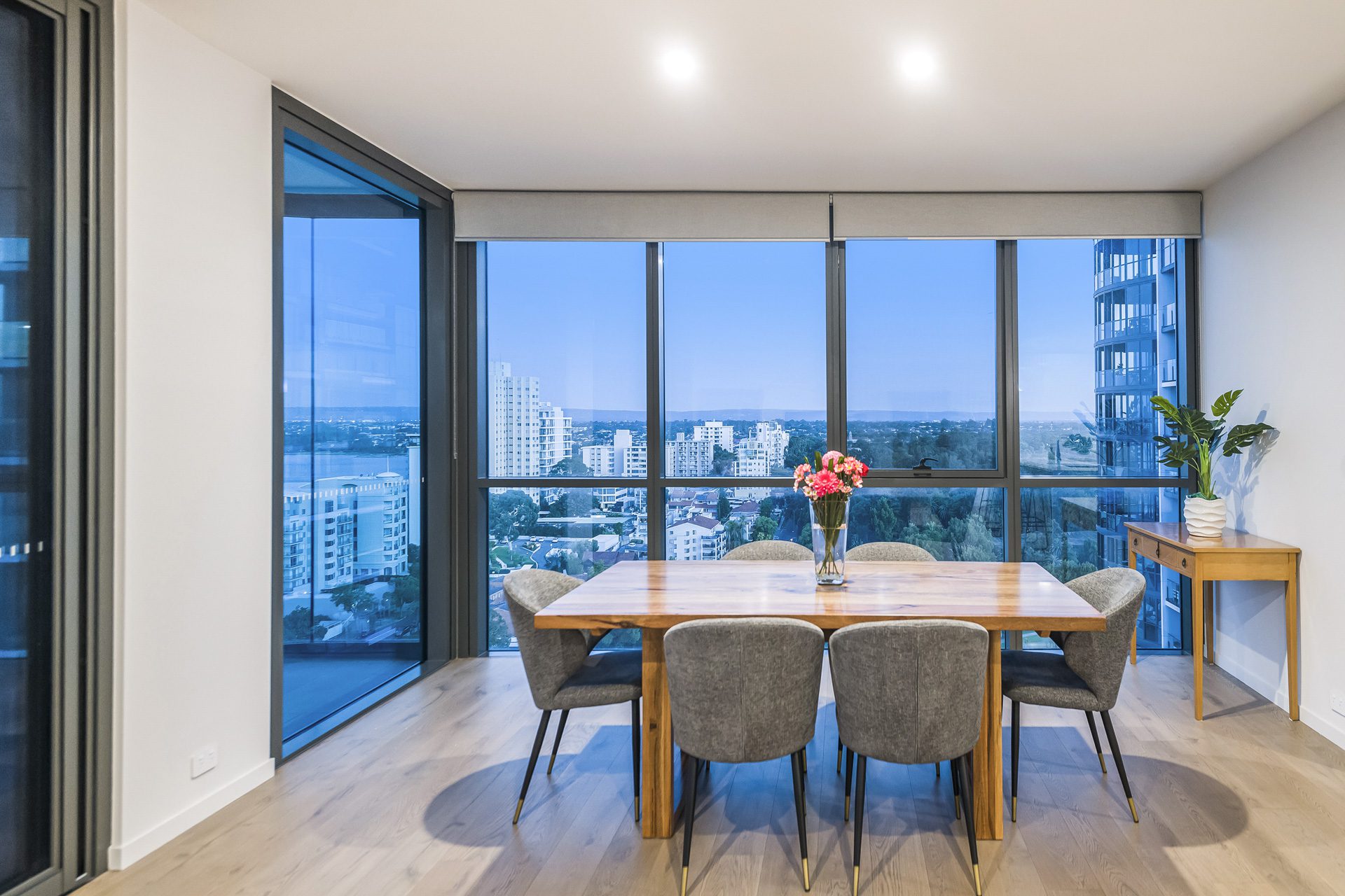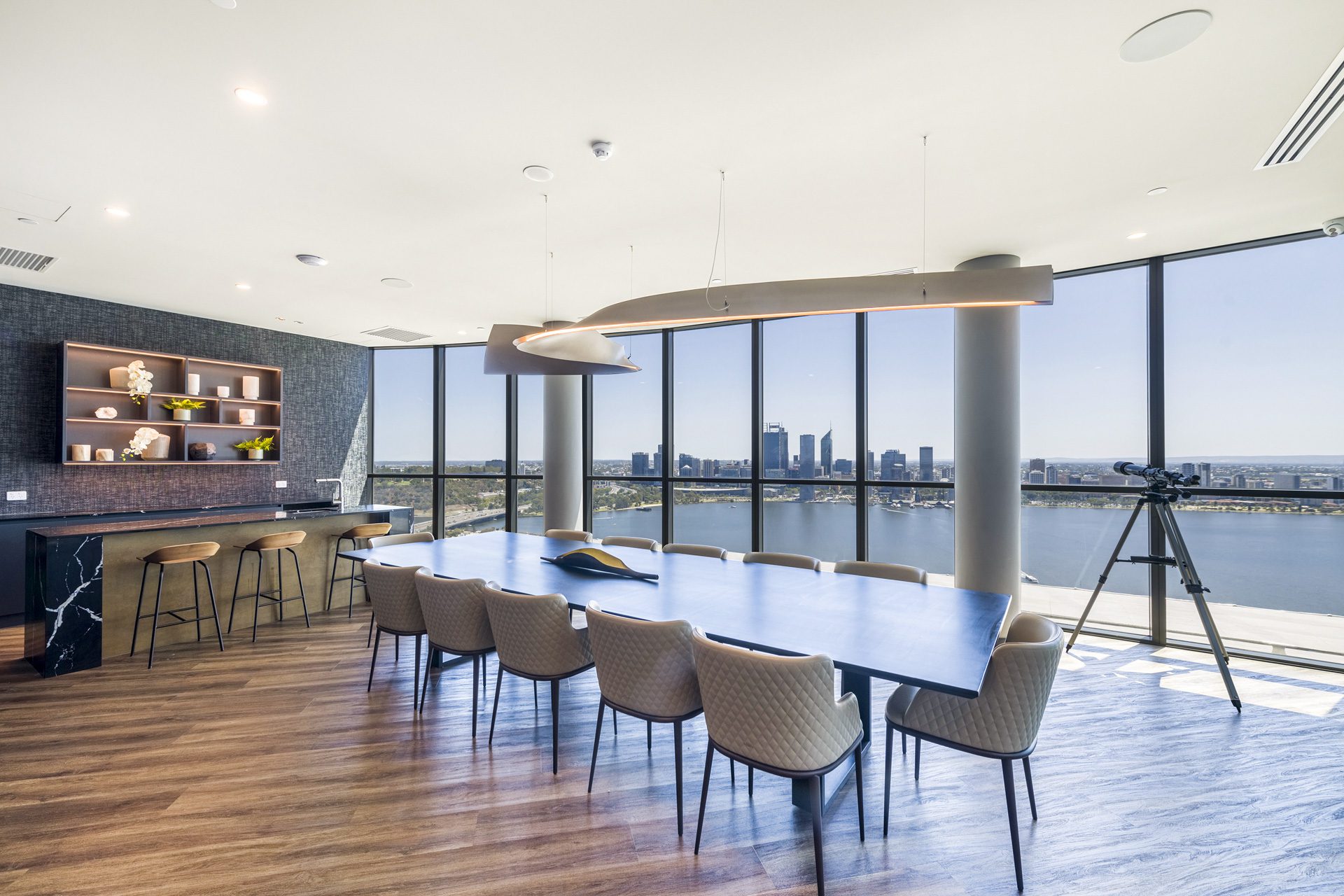 Perched on the 17th floor of the iconic Civic Heart, this luxurious 3-bedroom, 2-bathroom apartment offers breathtaking panoramic views of the Swan River, Perth City, Perth Hills, and Perth Zoo. Engineered oak floors, 2.7m ceilings, and floor-to-ceiling windows create light-filled open-plan living, seamlessly connecting to a generous 21sqm balcony-perfect for entertaining or relaxing with the ever-changing skyline as your backdrop.