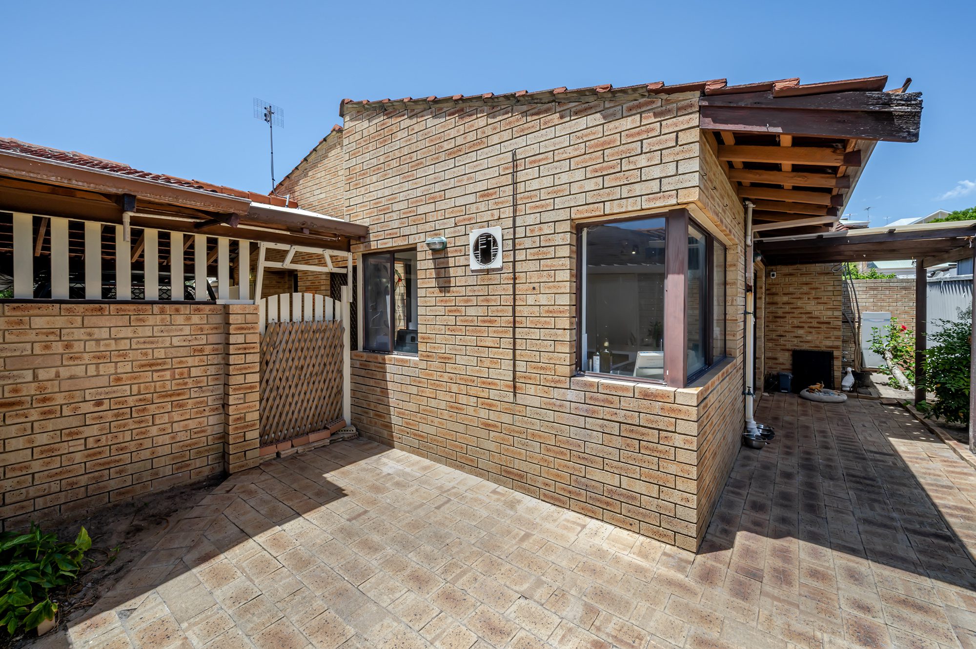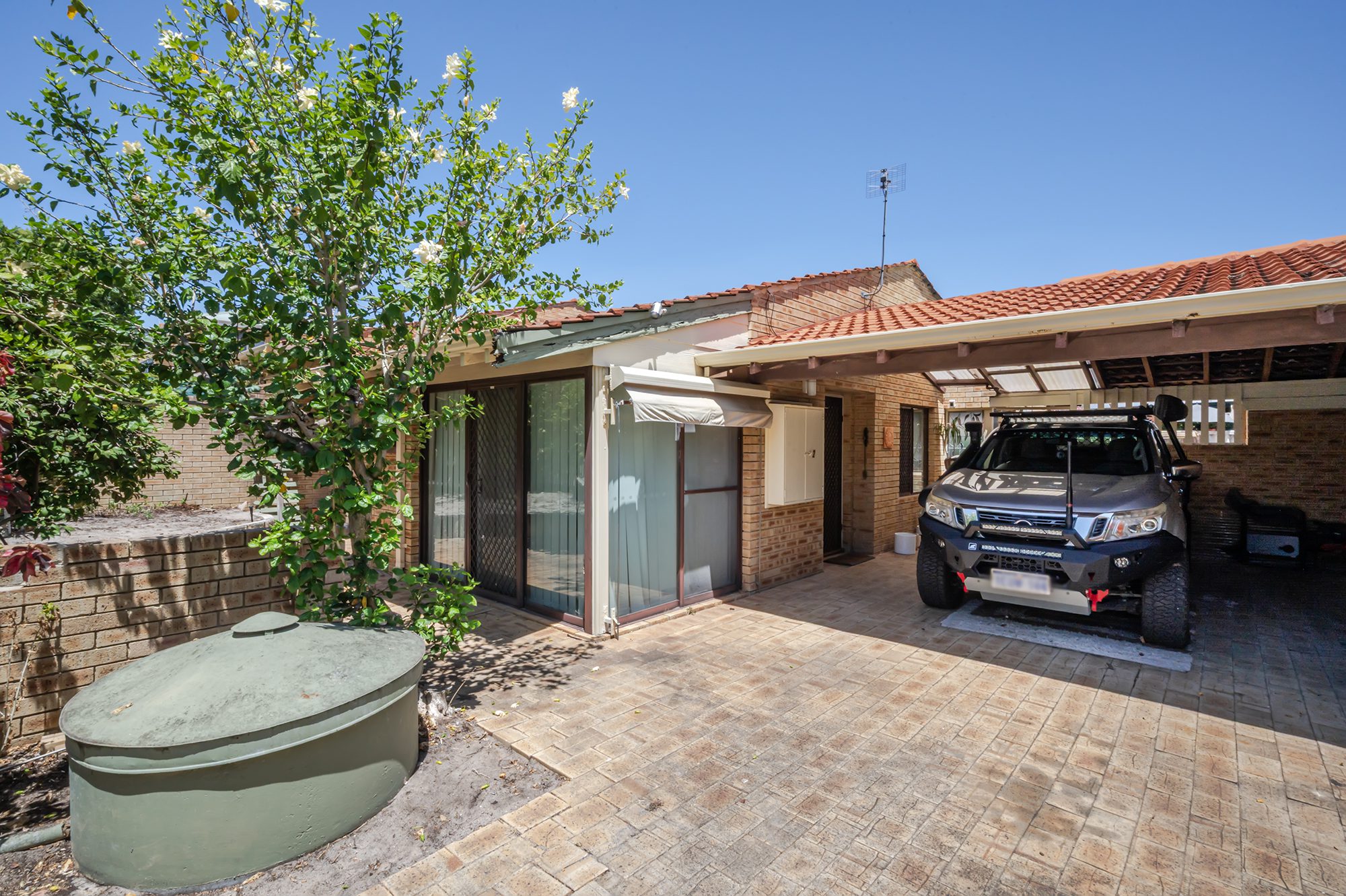 You can enjoying a quiet moment in the back courtyard. With two carport spaces, parking is hassle-free.