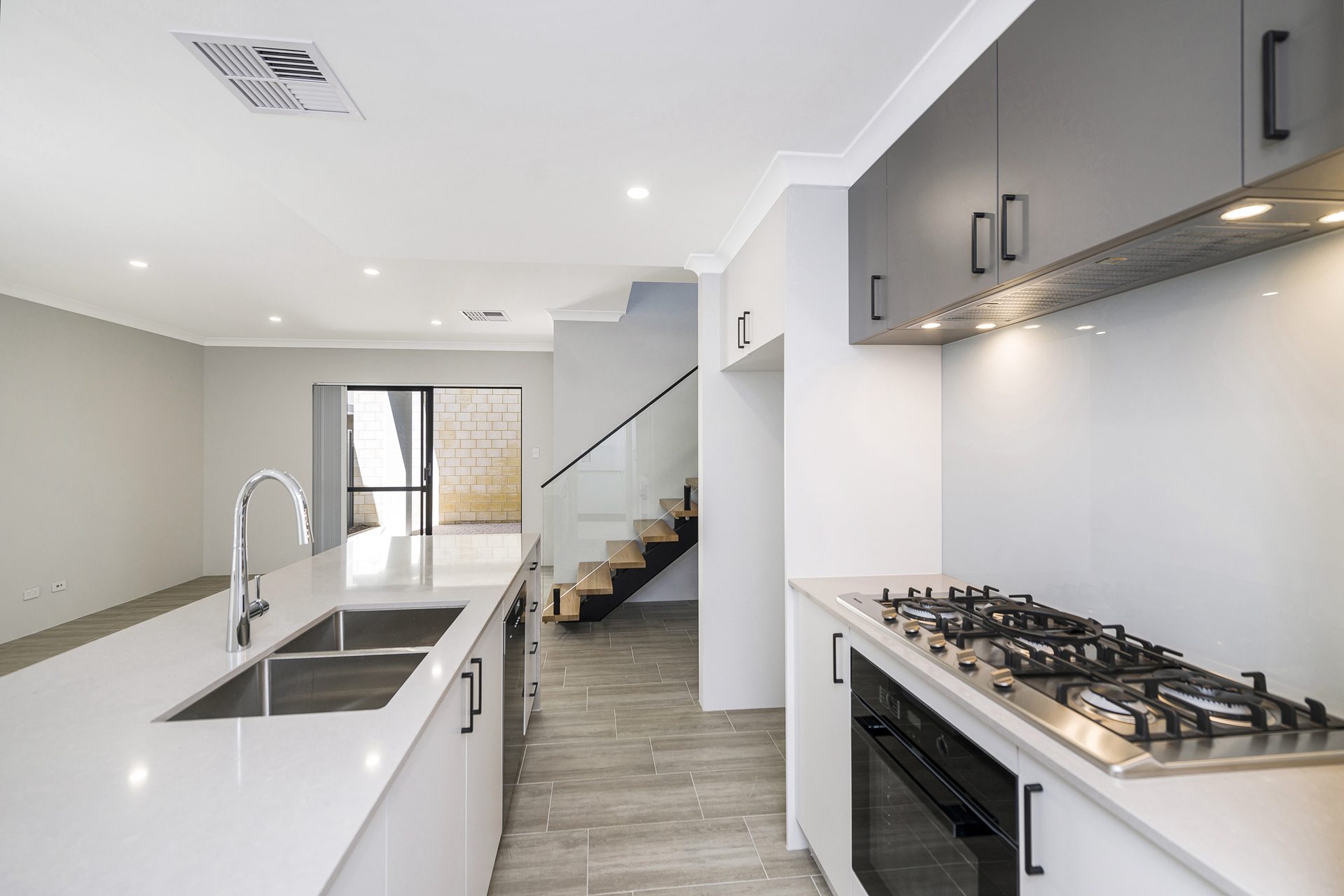 Behind the solid timber front door, a formal entry leads into a sun-filled open-plan living zone where sliding doors connect seamlessly to the secure front courtyard – the perfect spot for entertaining or unwinding.