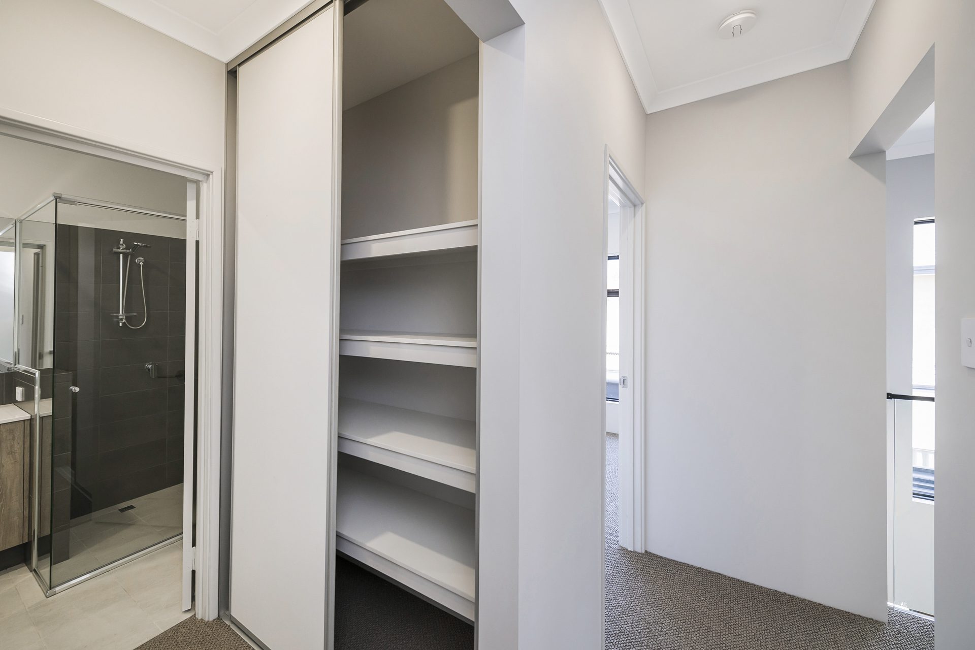 Adjacent to the kitchen, the stylish laundry features sliding door storage, under-bench cupboards, and direct access to a private drying area. Down the hall is the internal access to the secure double garage. A second bedroom with mirrored built-in robes offers flexibility and a bathroom with vanity, shower and WC complete the ground floor.