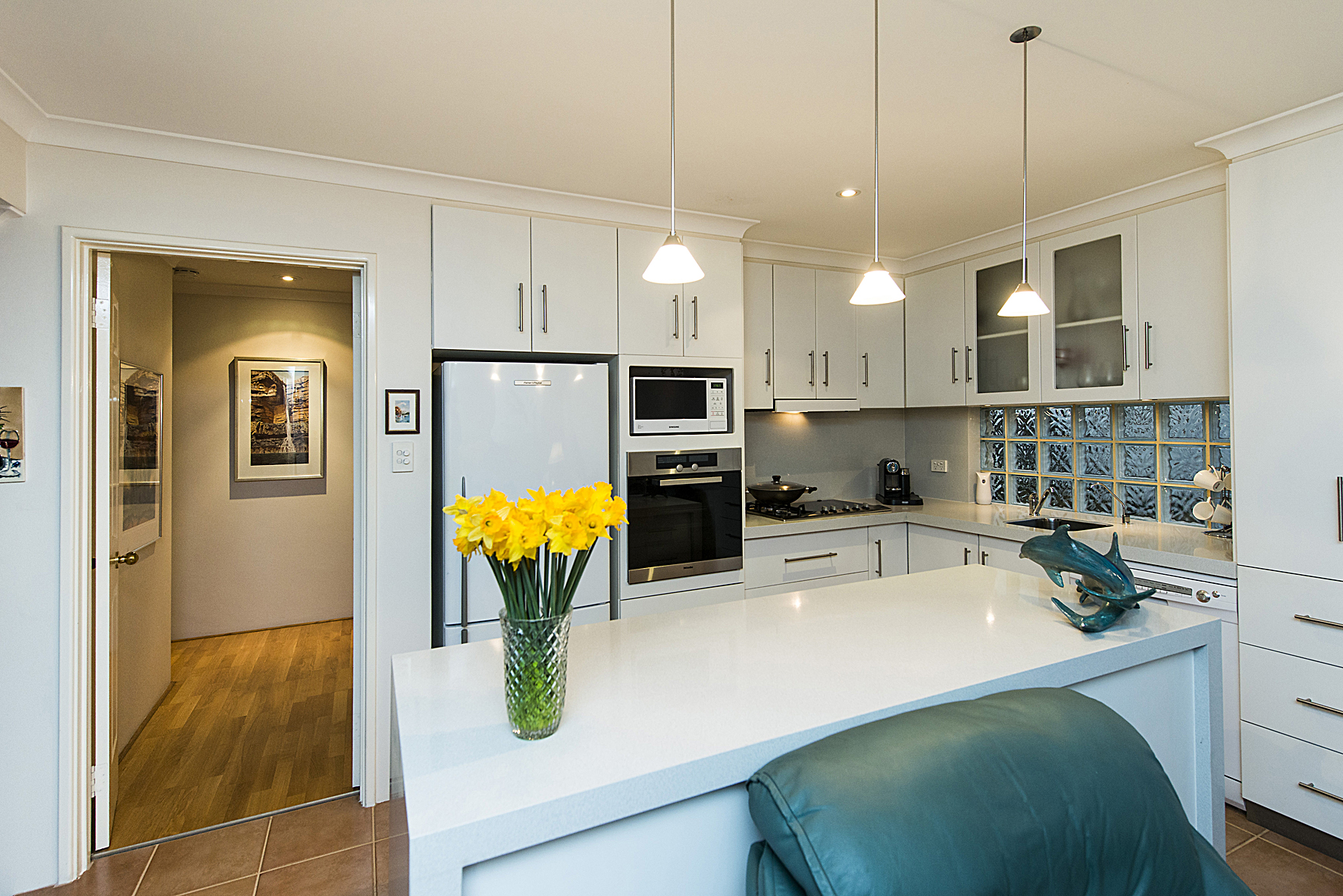 – Kitchen with Miele oven & high quality finishes including stone splash back and benches.