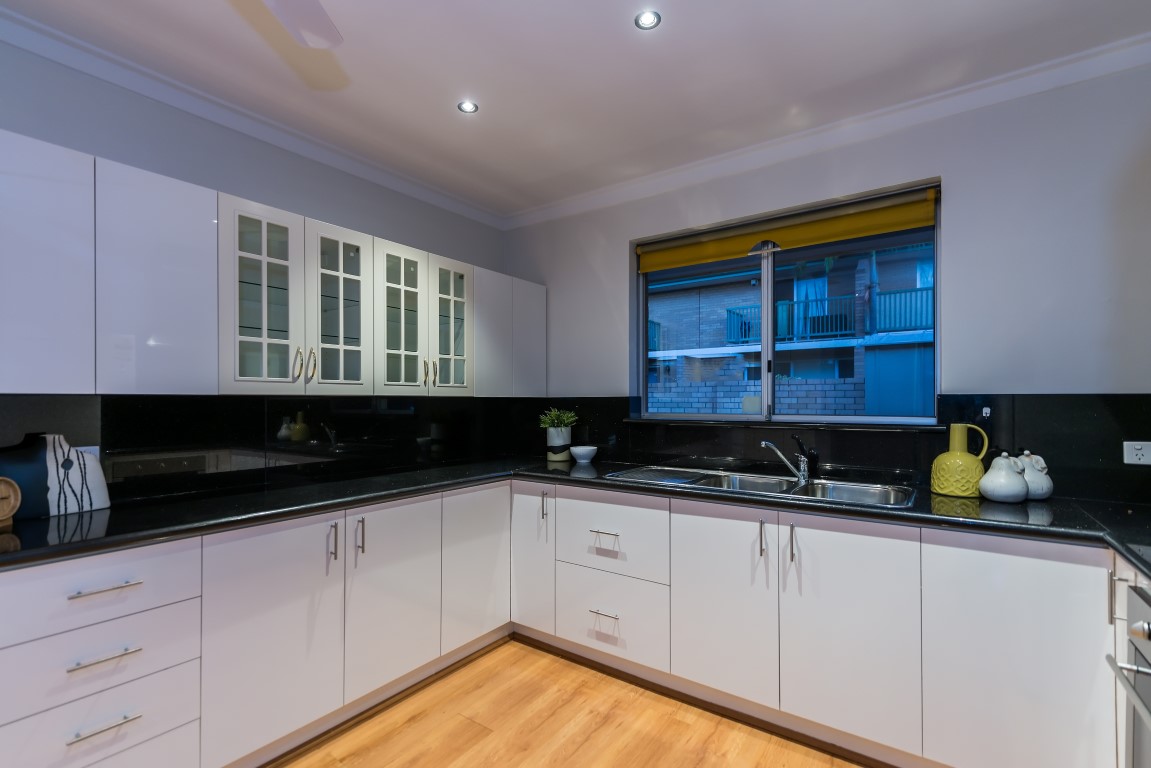 Near new kitchen with granite bench tops and plenty of cupboard space