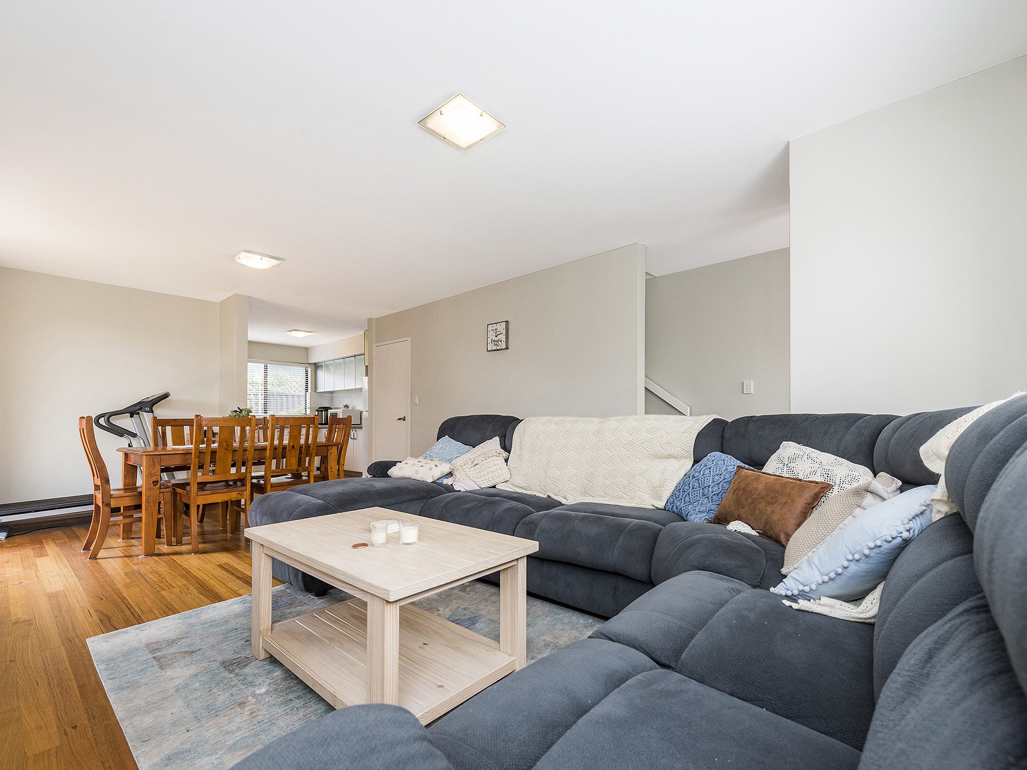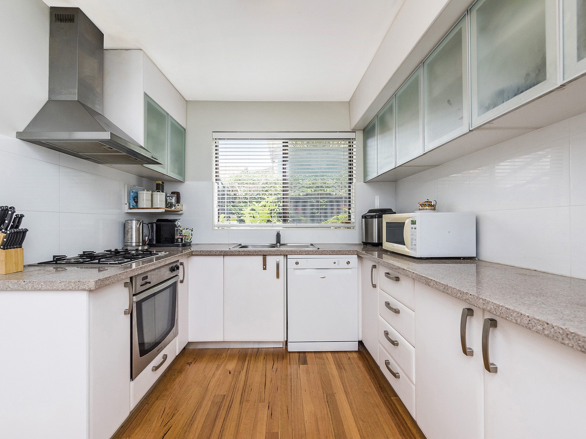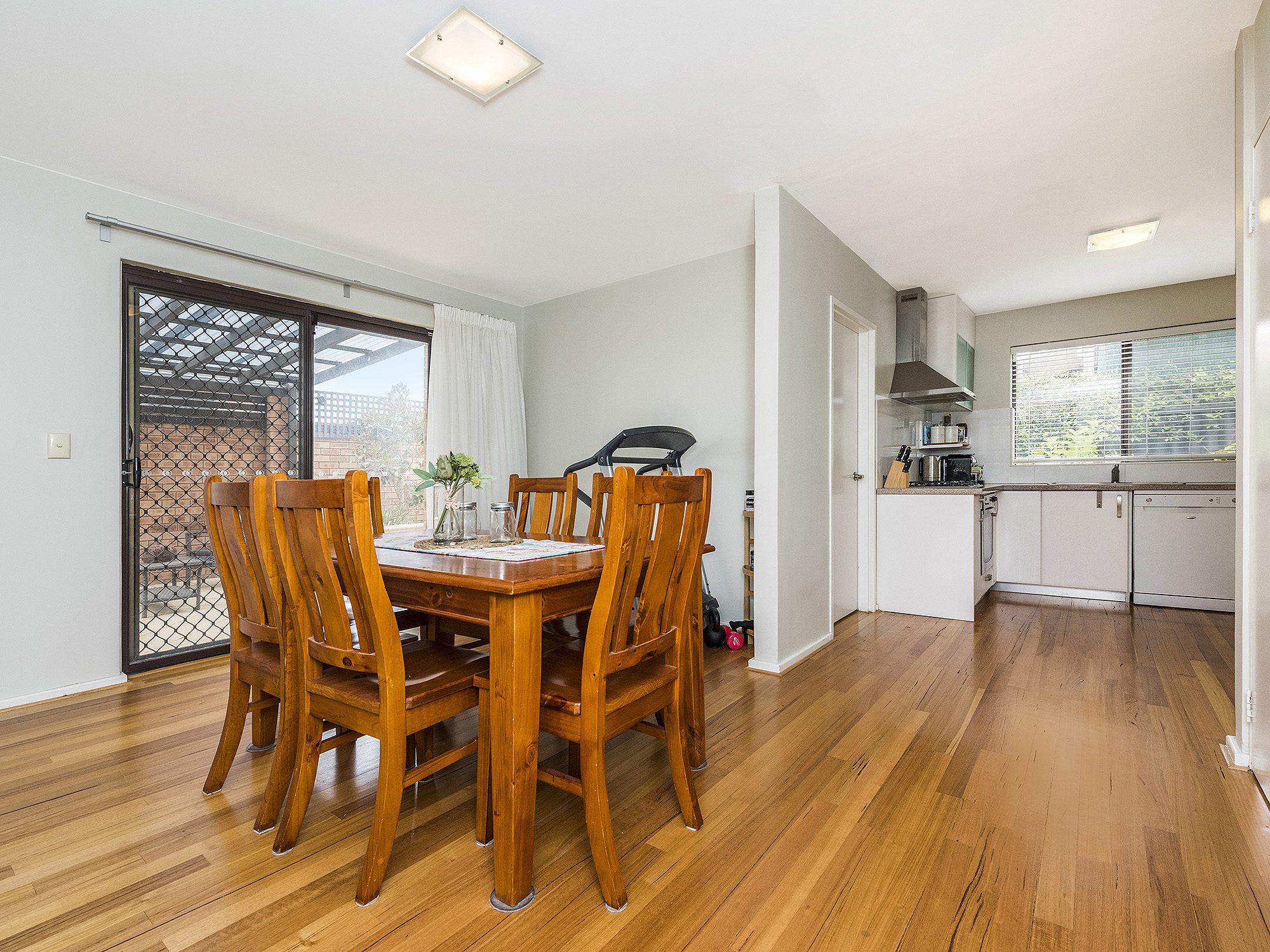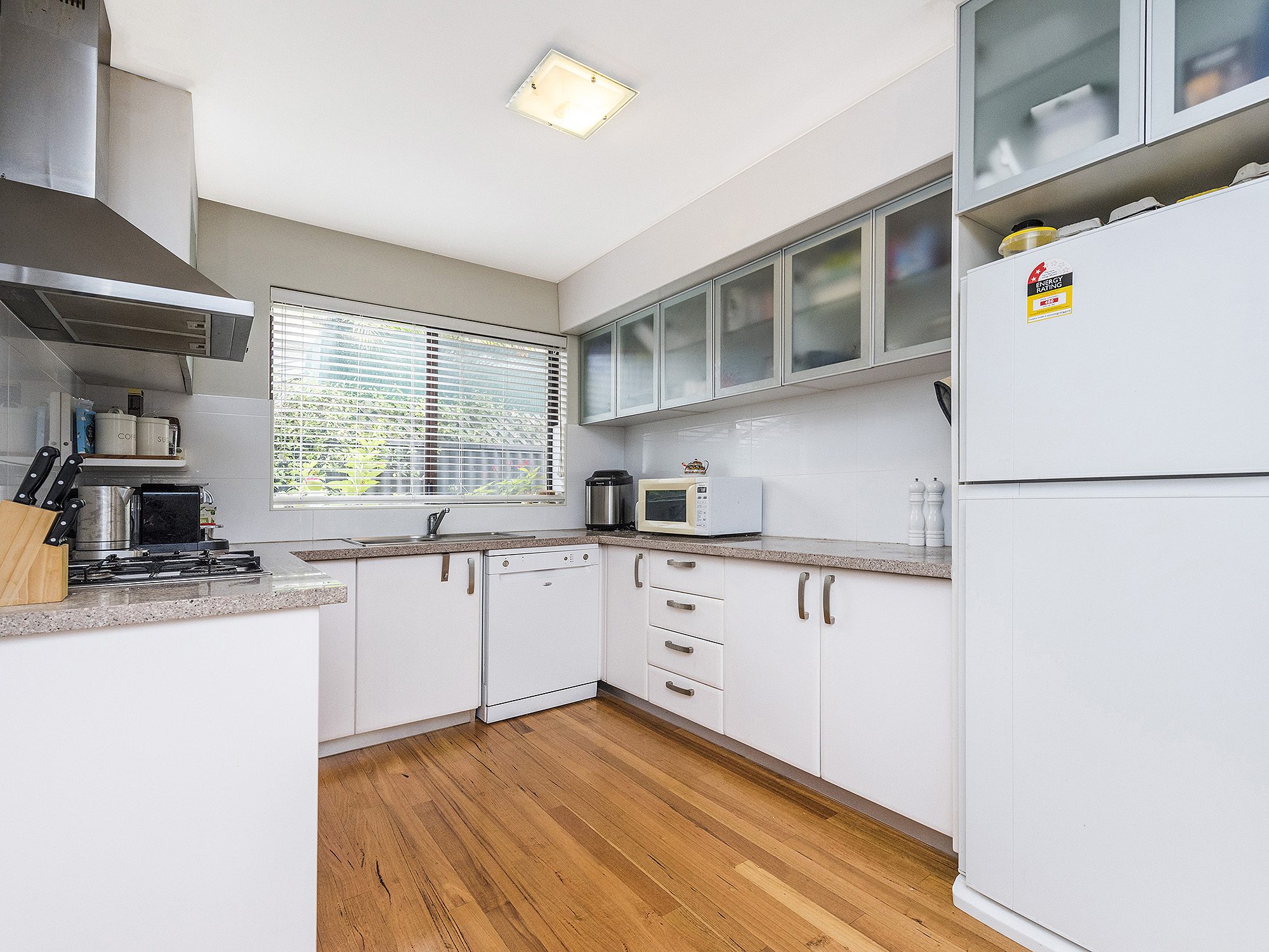 A spacious light and bright living and dining area adjoin a stunning kitchen featuring stone benchtops, quality appliances and ample cupboard space.