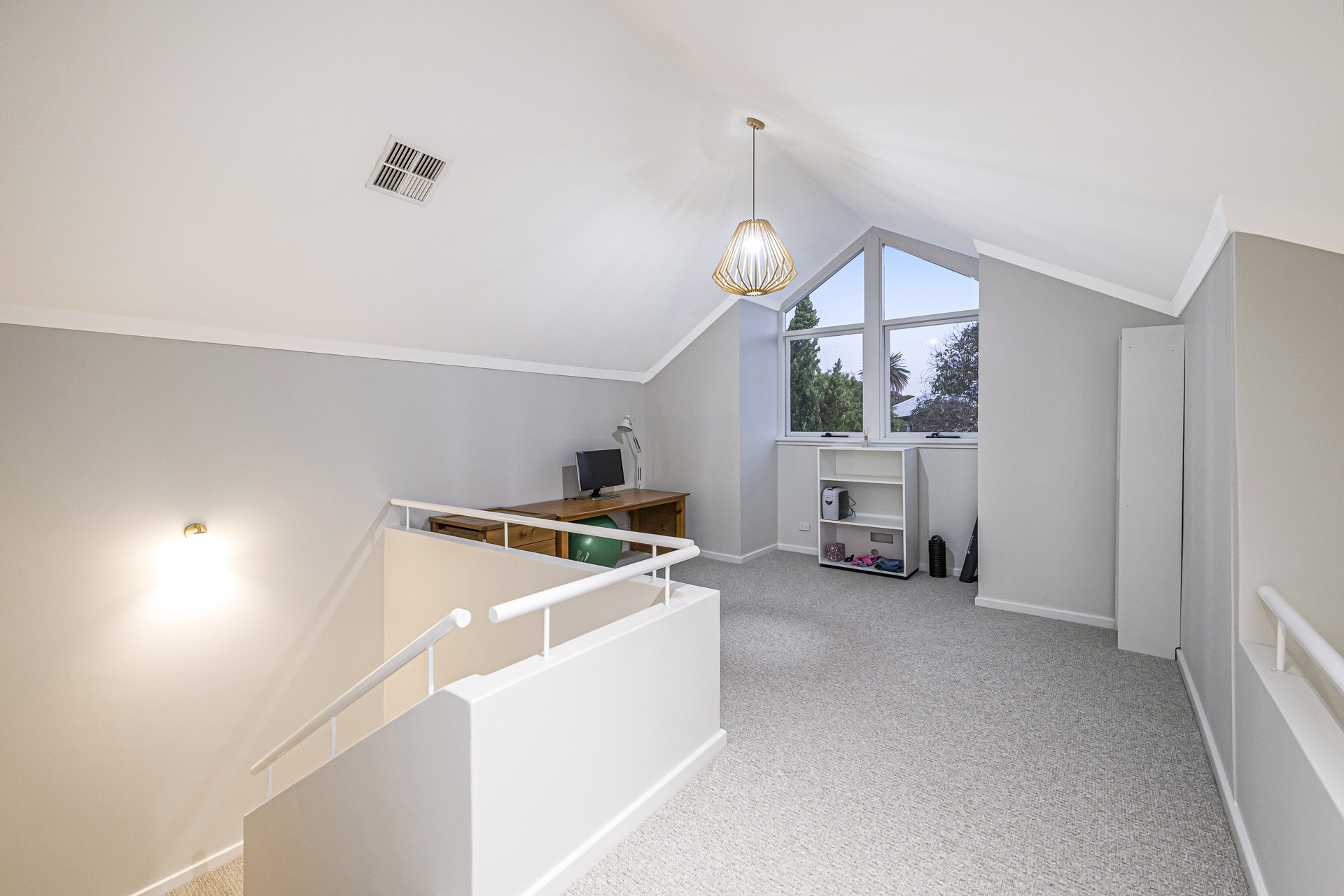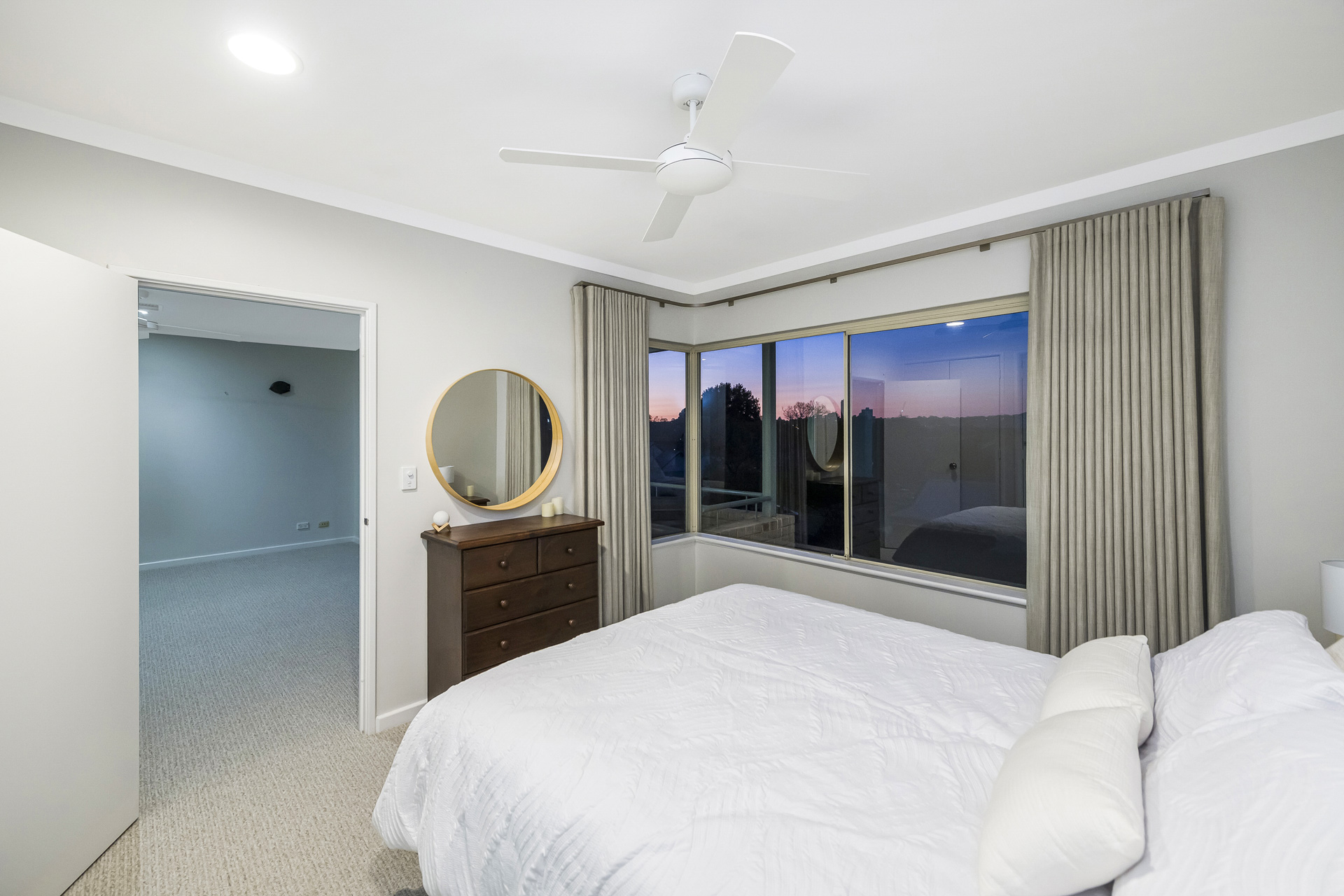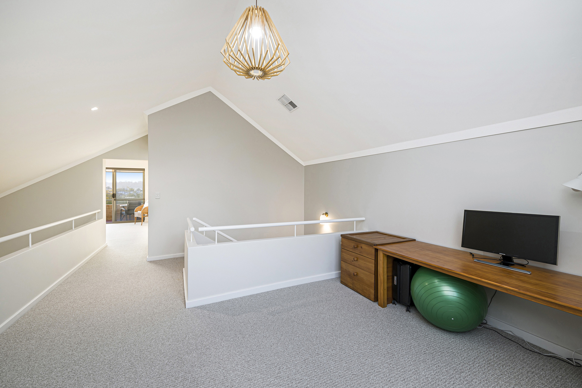 The versatile two-level floorplan provides over 215sqm of internal living, including a recently renovated designer kitchen with quality appliances, multiple living areas, a private main bedroom suite with balcony, and an upstairs retreat with views of Kings Park, the Swan River, & Optus Stadium.