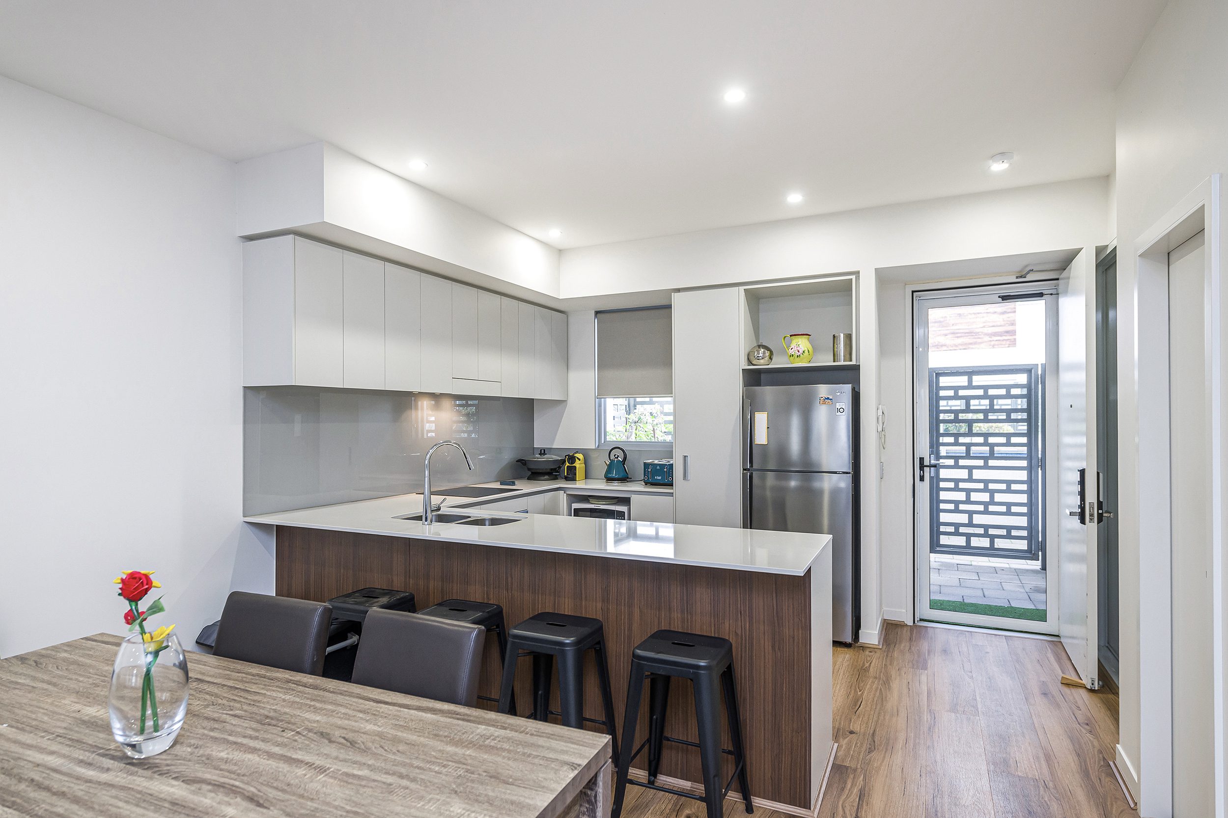 As you enter into this townhouse style apartment you will find the spacious front courtyard, moving into the home is the open plan kitchen, dining and lounge with upgraded modern flooring which flows out through sliding doors to a great sized private balcony, perfect for having guests over. The modern kitchen is a great size with electric cooktops, plenty of cupboard and bench space, the laundry space is close by and very well integrated. There is under the stair storage and a downstairs powder room, with the living area being serviced by a reverse cycle split system air conditioner.