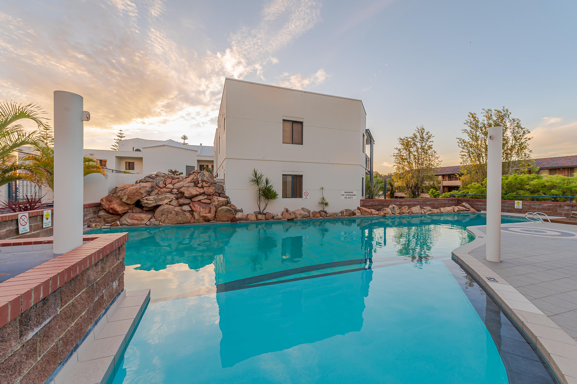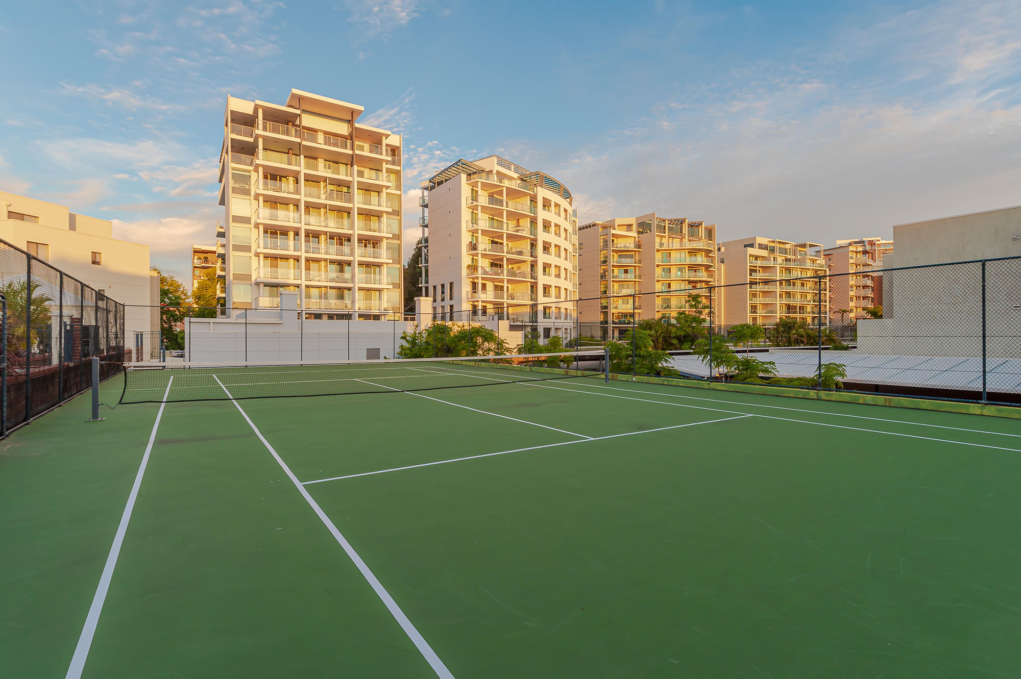 Featuring a separate entry hall; generous size living and dining area leading to entertainer’s size balcony; kitchen area with lots of cupboard space; 3 bedrooms (ALL with built in robes) and 2 BATHROOMS ……. master bedroom with access to the balcony and ensuite with separate WC; large laundry/2nd bathroom; 2 secure parking bays and very attractive resort style facilities including full size tennis court, gymnasium, sauna, common entertaining room and large pool and sundeck from where you can see the river.
