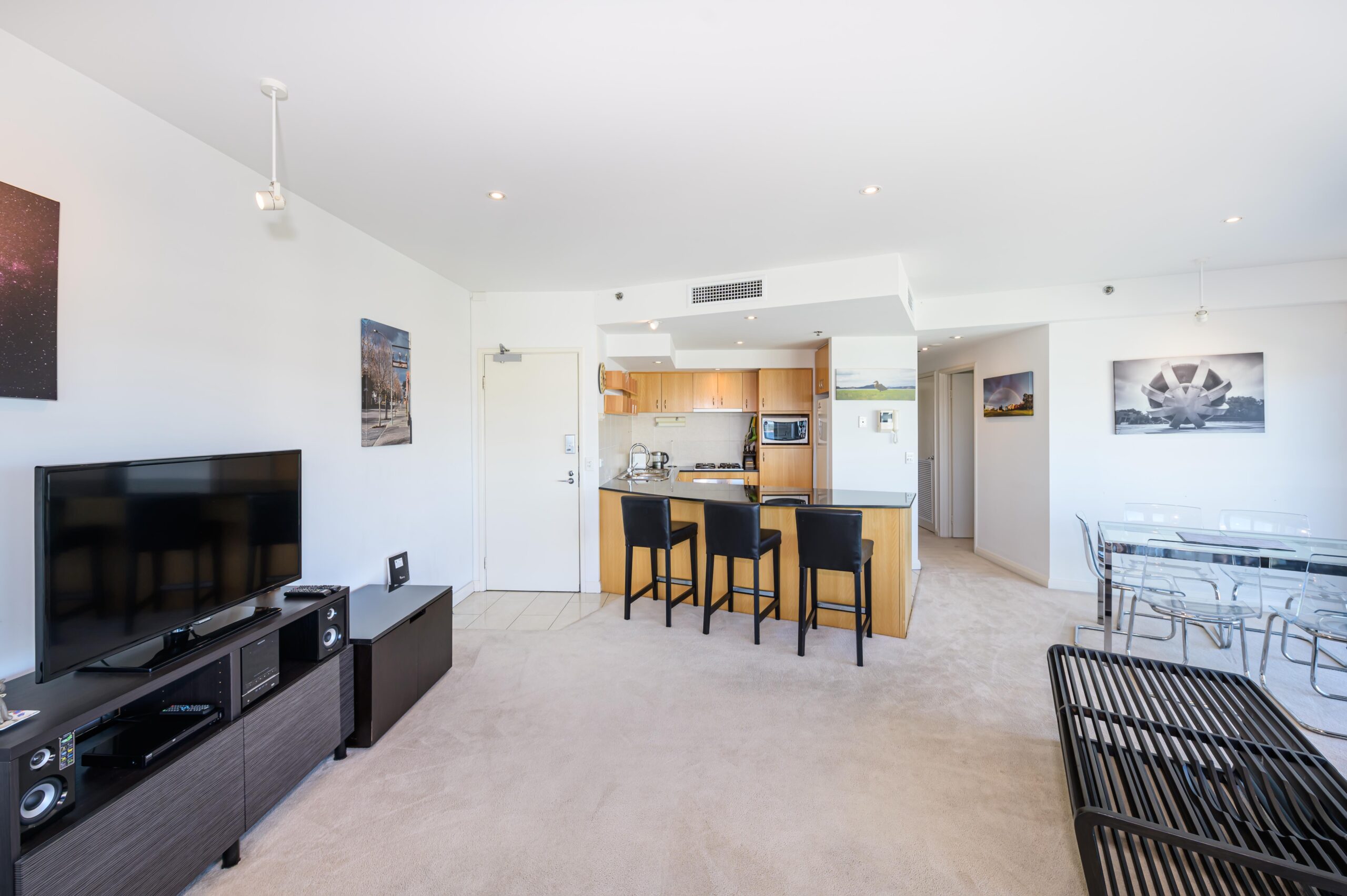 Features include light and bright open plan living, reverse cycle air conditioning, chefs kitchen with quality appliances and benchtops, a 20sqm entertainer’s balcony plus a separate master bedroom balcony. Both bedrooms include built in robes, there is also an integrated laundry in the second bathroom.