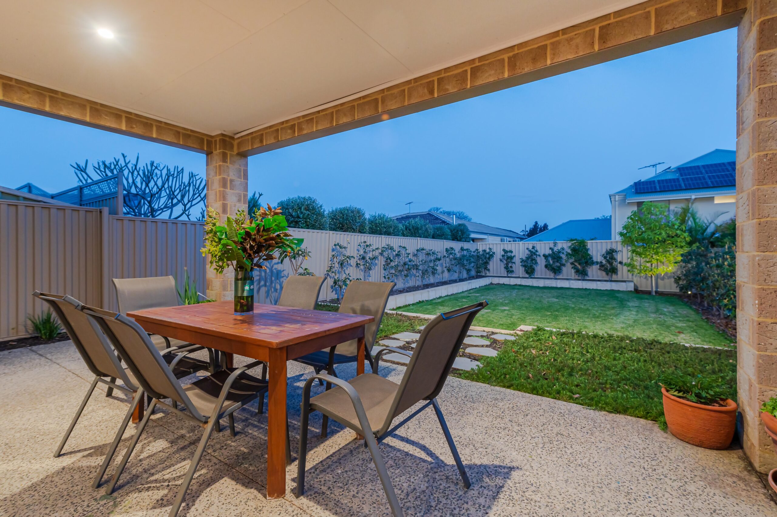 The backyard features an excellent lawn area and easy-care native gardens, all watered by automatic reticulation.