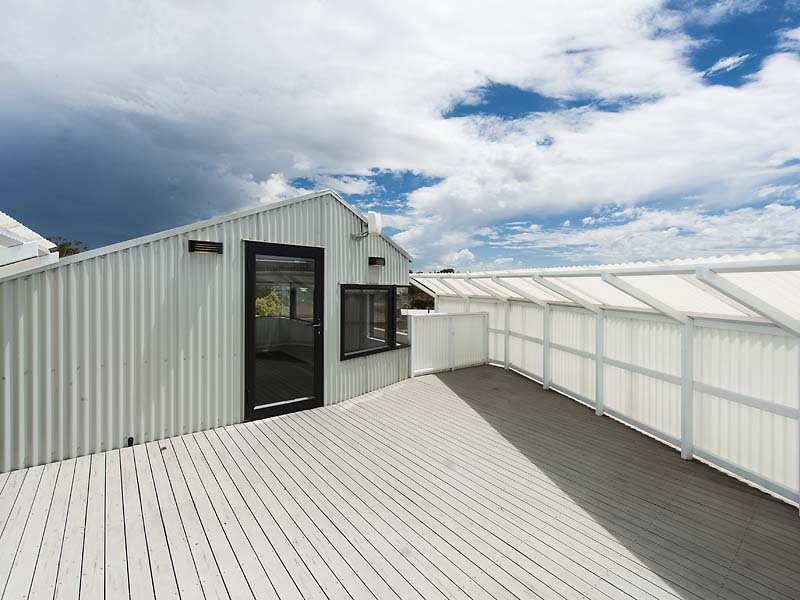 – Separate laundry including bench space, cupboards, shelving – behind sliding doors.