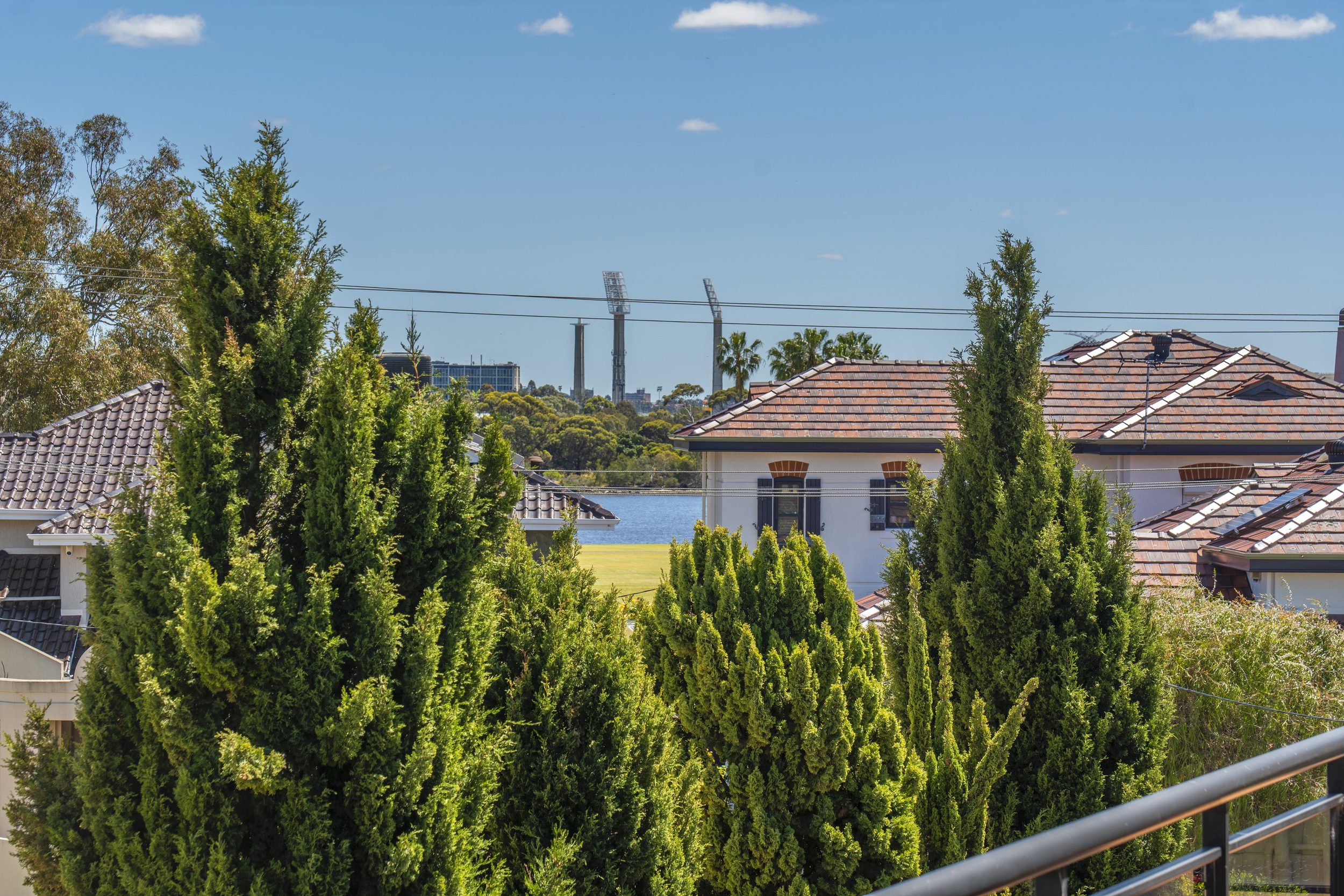The upper level has the open plan living/dining area with a balcony which offers beautiful views of the city skyline and glimpses of the river. The kitchen overlooks the dining/living space and also has a wonderful view of the city skyline. The master bedroom also on this level has access to the balcony with city skyline views. It has large built in wardrobes and an ensuite with vanity and shower with floor to ceiling tiles. There is also a separate space with mirror and storage next to the powder room . Easy access for you and your guests without having to enter the ensuite.