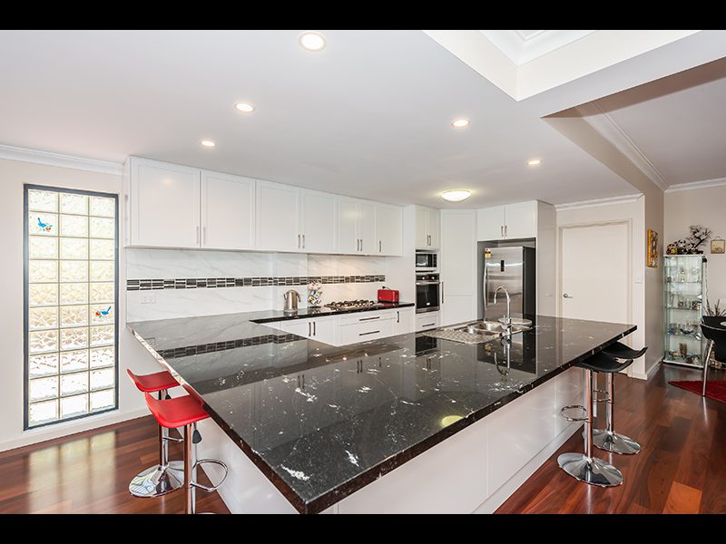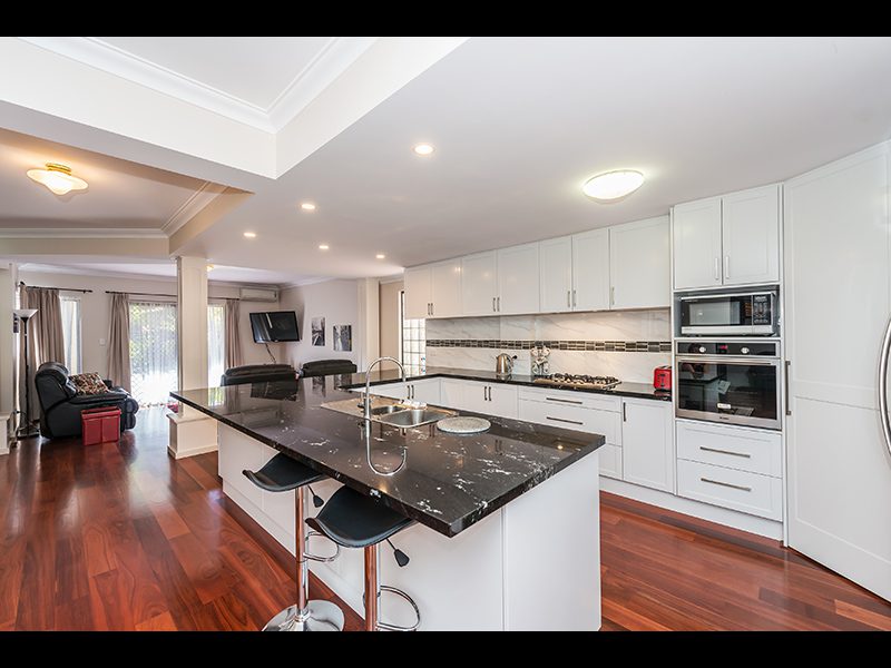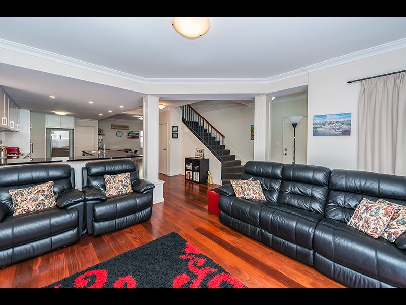 The home offers open plan living, amazing chef’s kitchen with more bench space then you will ever use, dining area and study opening onto the rear courtyard and a second living area upstairs with access to the spacious balcony with delightful sea breezes and glimpses of Melville Waters and a double garage with direct access into the home.