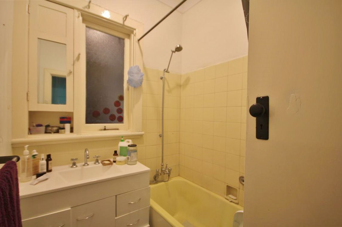 Practical bathroom with shower over the bath.
