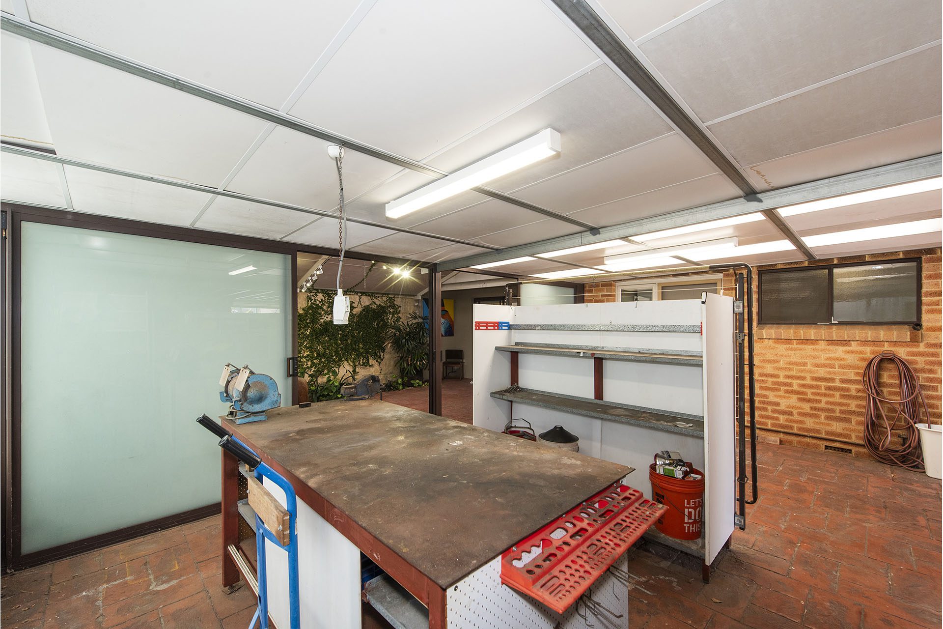 • Workshop area plus built-in storage area above the garage