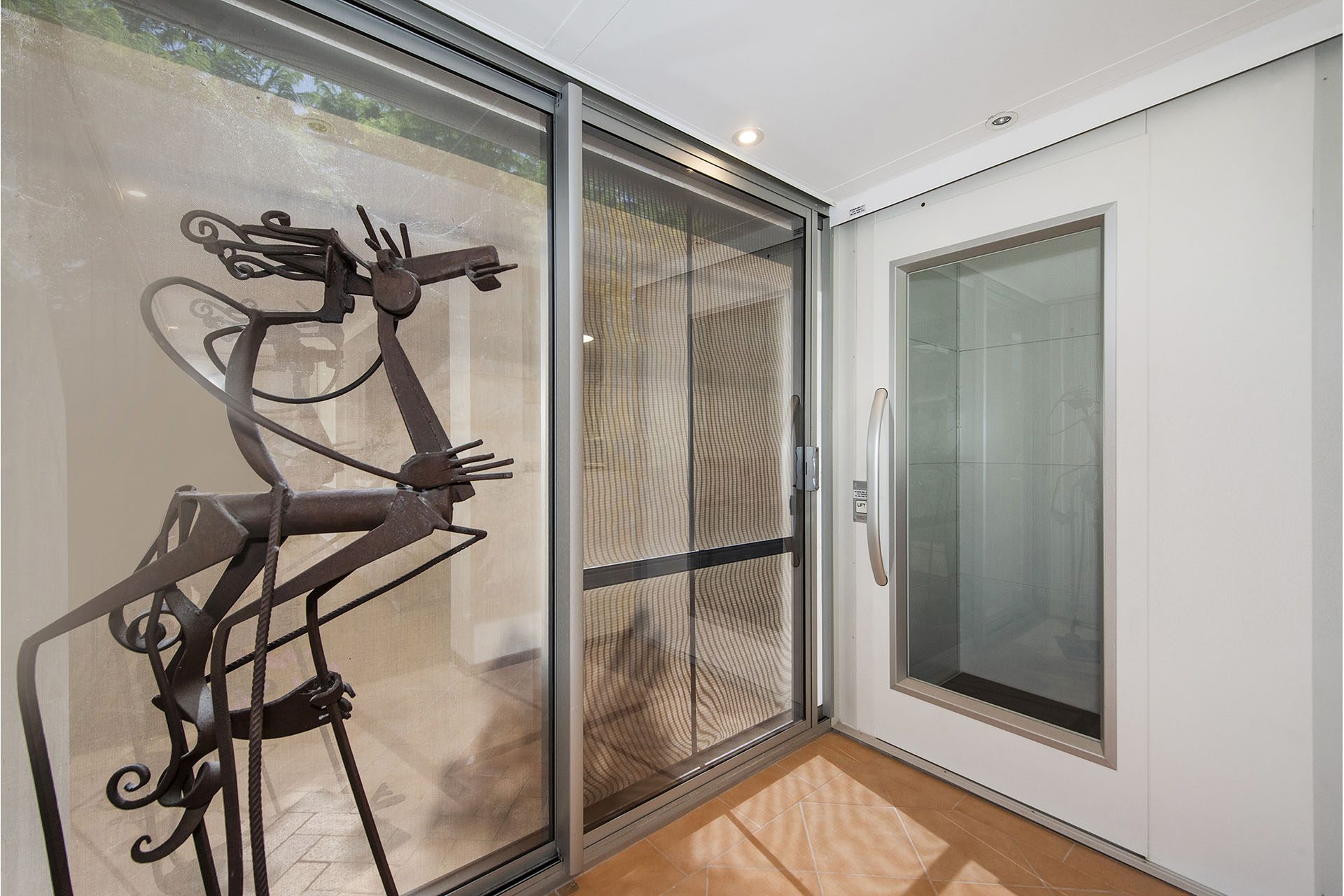 Formal entry with study/bedroom to the left and a formal lounge with sitting room to the right with access to the lovely courtyard and garden beds, perfect spot for entertaining or quiet contemplation. There is a lift to the second level.