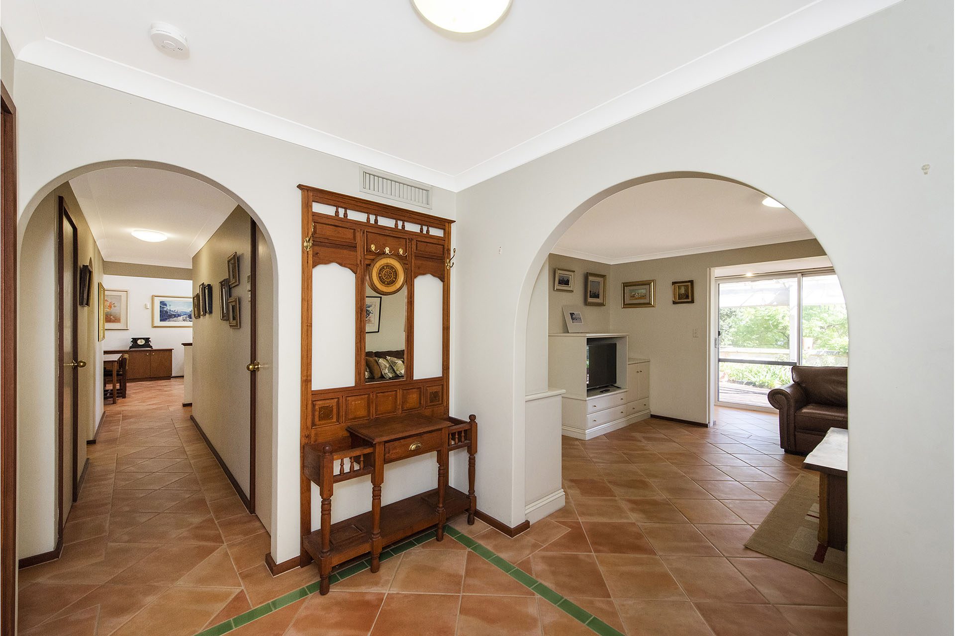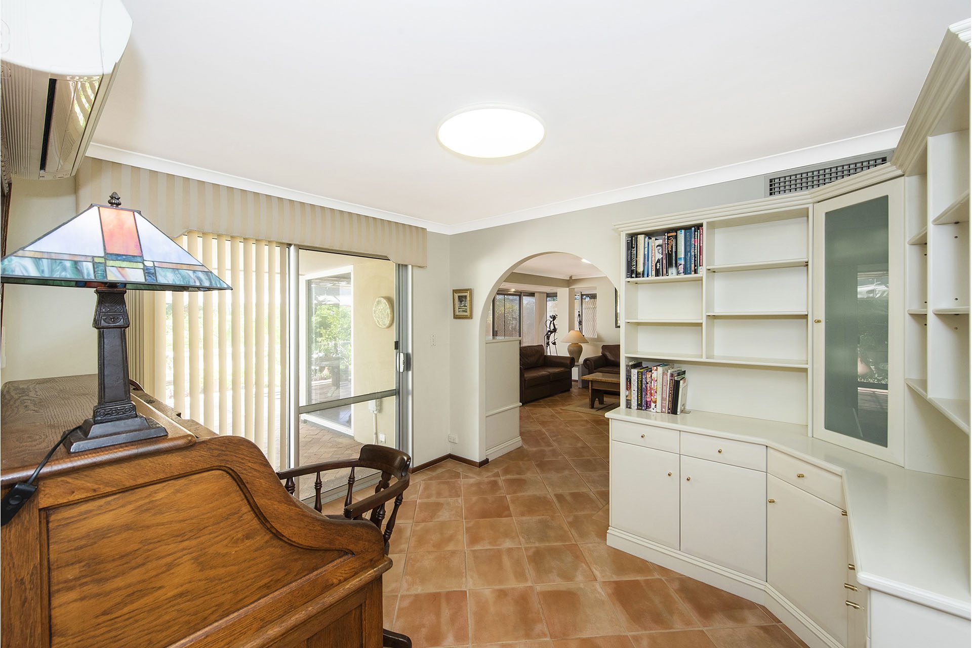 The large kitchen with plenty of cupboard and bench space overlooks the formal dining which has access to the inner covered paved courtyard with gardens and an air-conditioner, perfect for all year use.