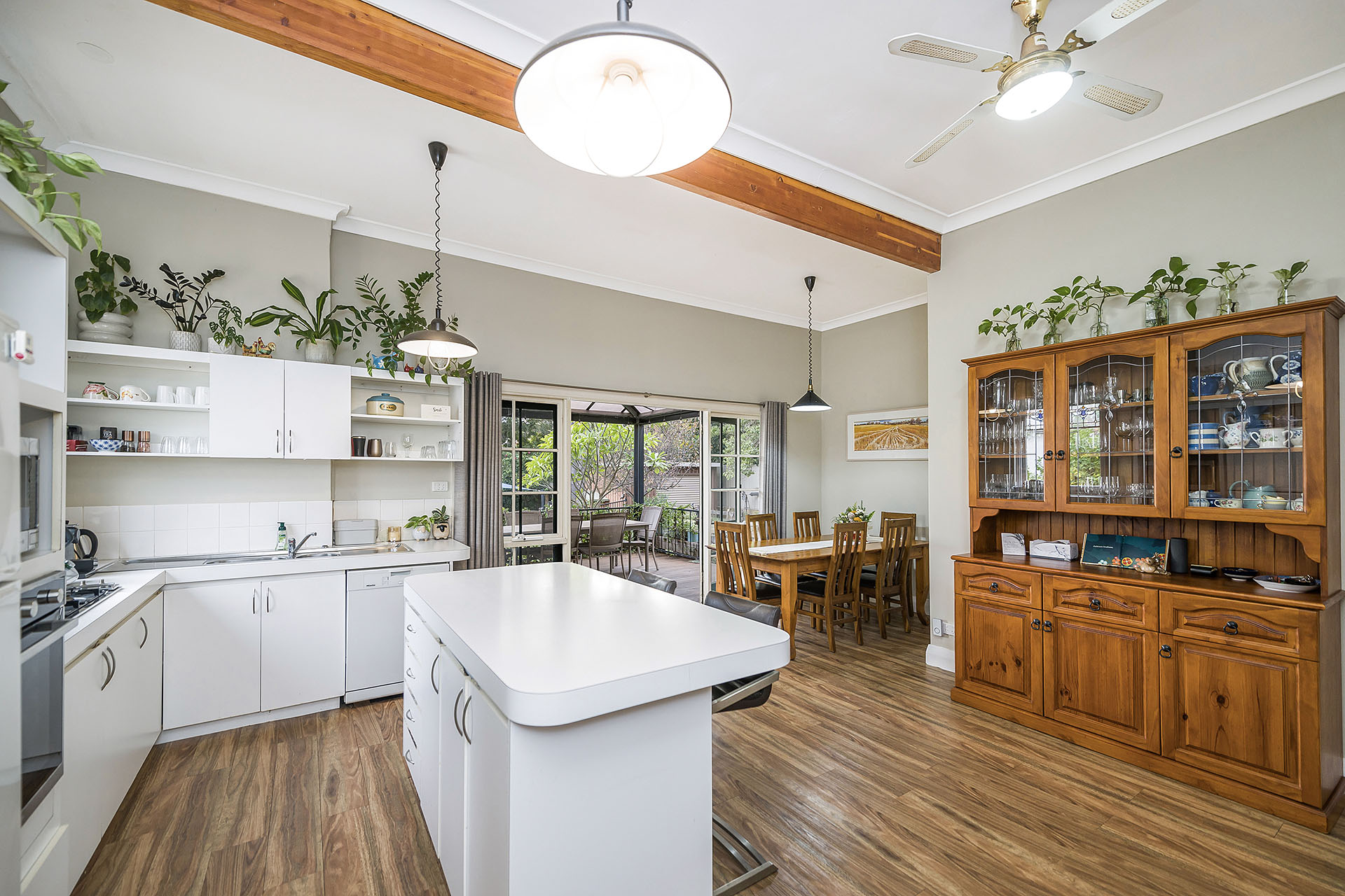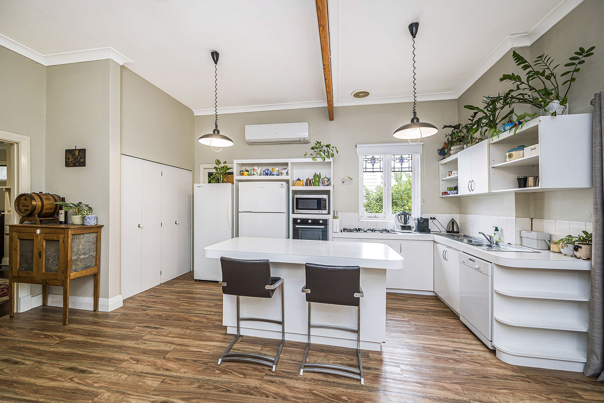 Currently, a much loved, well presented cottage with separate entry hall, living room with ornate fireplace, 2 generous size bedrooms, bonus sleepout with storage ideal for an office or dressing room, spacious open plan kitchen with breakfast bar, lots of cupboards, bench space and dishwasher with an adjoining dining area leading through French Doors to an expansive alfresco entertaining area overlooking a sparkling below ground pool with attractive surrounds, pretty lush green well maintained gardens and rear access with garage. Split system air conditioners in all main rooms except the sleepout.
