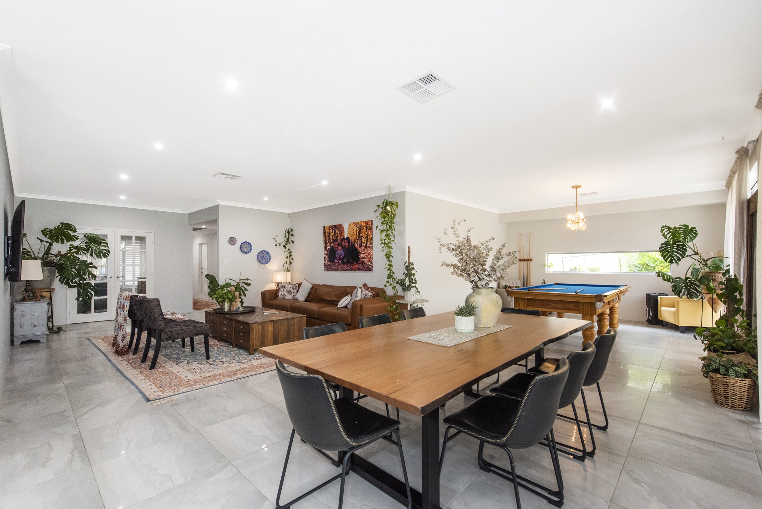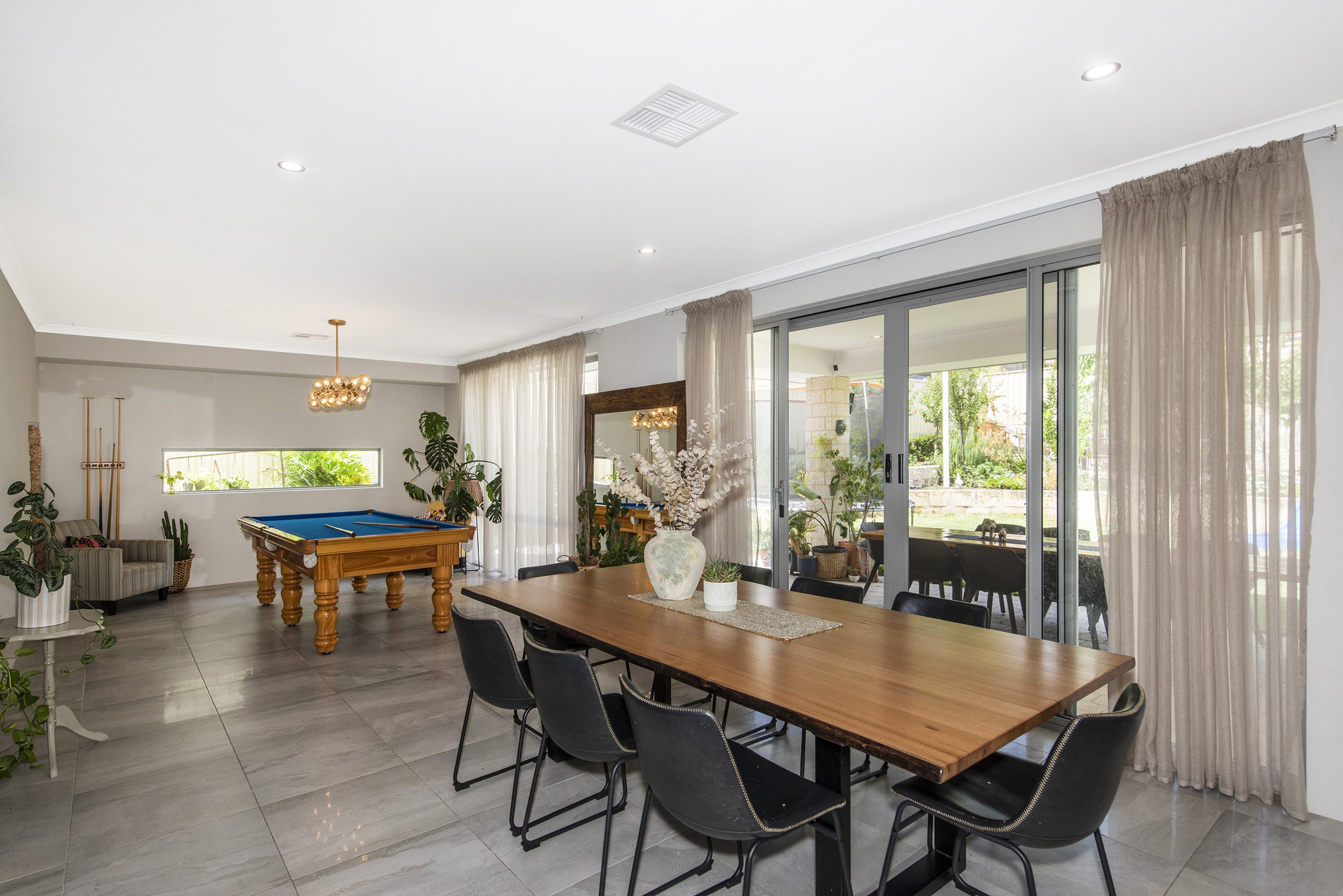 The home opens up to the large living/dining area and games room looking out to the beautiful backyard with undercover entertaining area and large limestone raised garden beds.