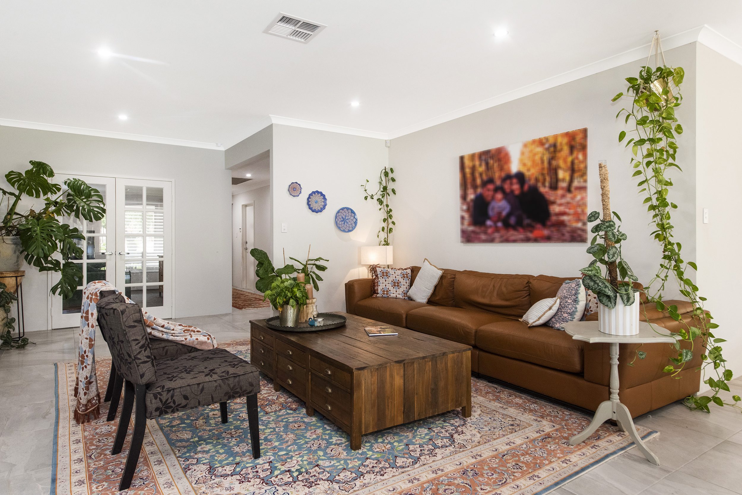 Upon entry through the large front door is a wide hallway entrance with entry into the home from the double garage.