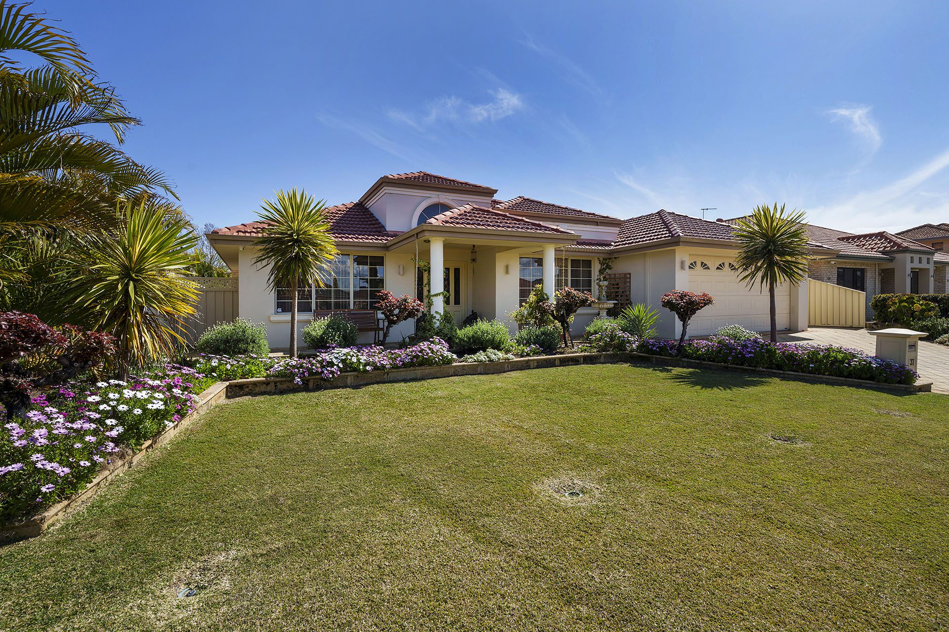 There are beautiful garden beds which are ideal for planting flowers or fruit and veg and a garden shed for extra storage. The home also has a double car garage with room for more cars on the driveway.