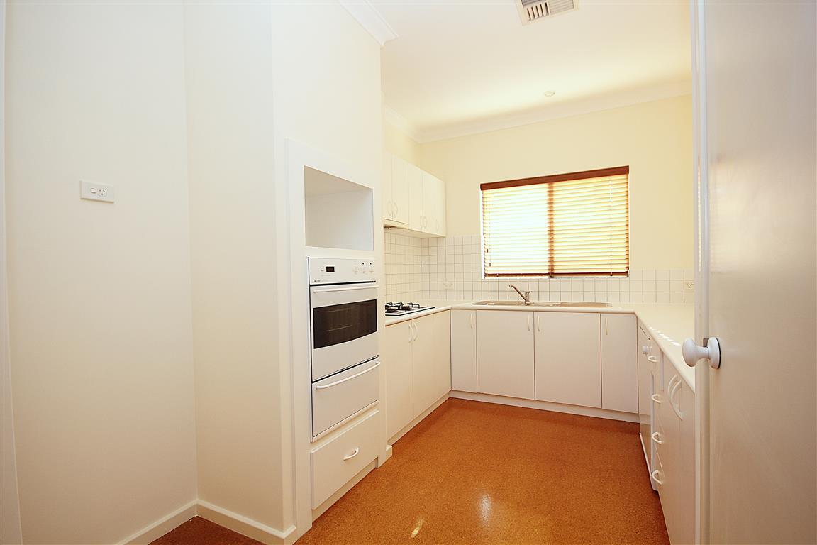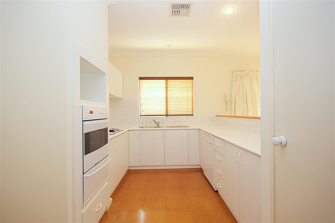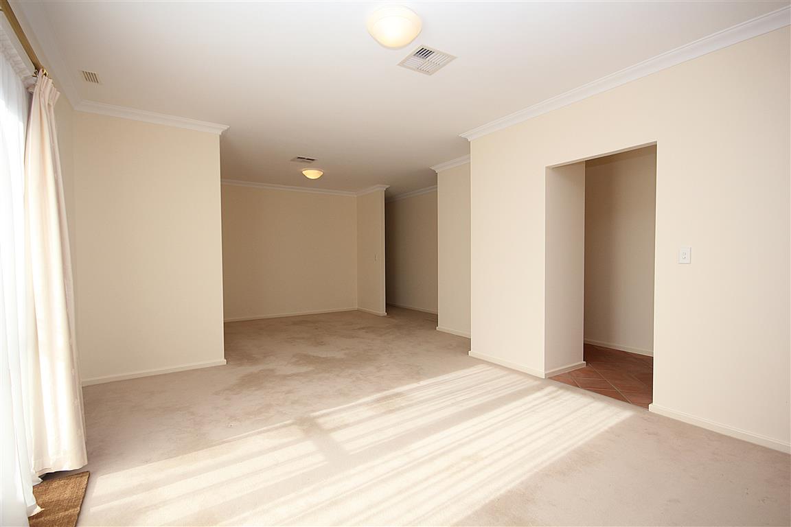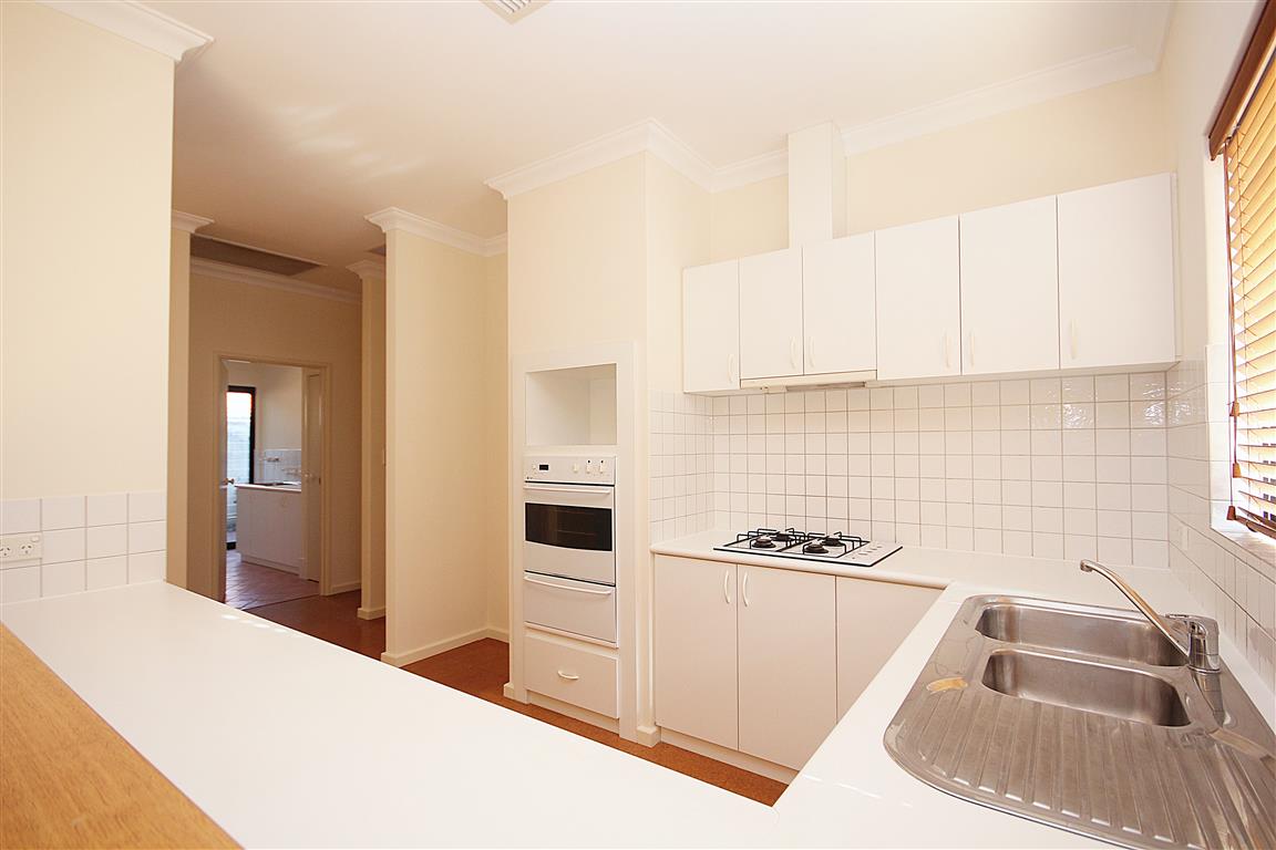 The front tiled entry leads to the formal living area – very spacious with access to front secure courtyard. The living area at the rear of the property adjoins the kitchen which features pantry, dishwasher, double sink, gas cooktop and oven, and plenty of bench space and overhead cupboards for storage.
