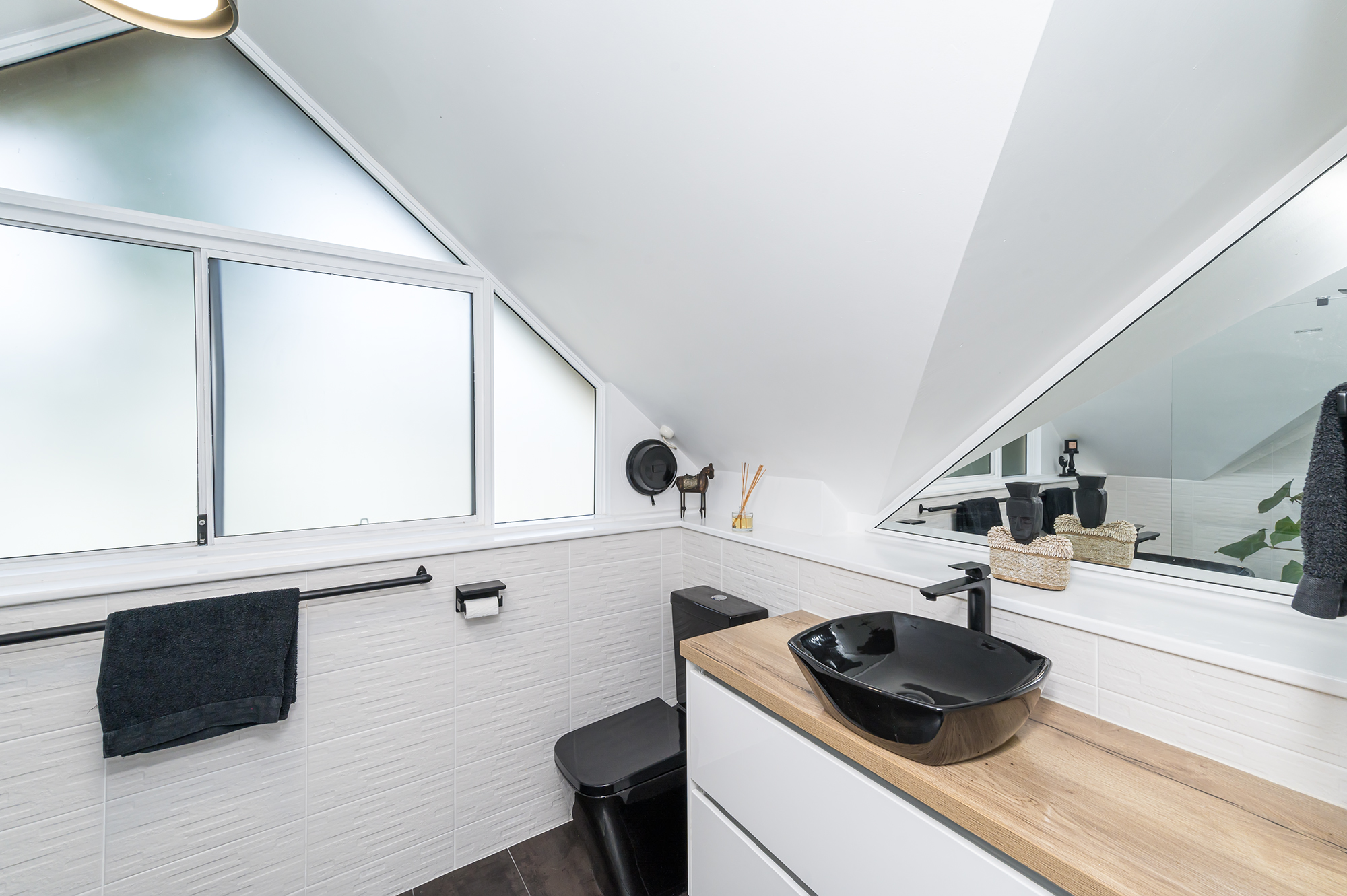 The upper-level features 2 very spacious King-size bedrooms, both with built in robes, ceiling fans, air conditioning and new carpets; absolutely STUNNING recently renovated walk in rain shower bathroom with WC, floor to ceiling tiling, vanity and Barn style sliding door.
