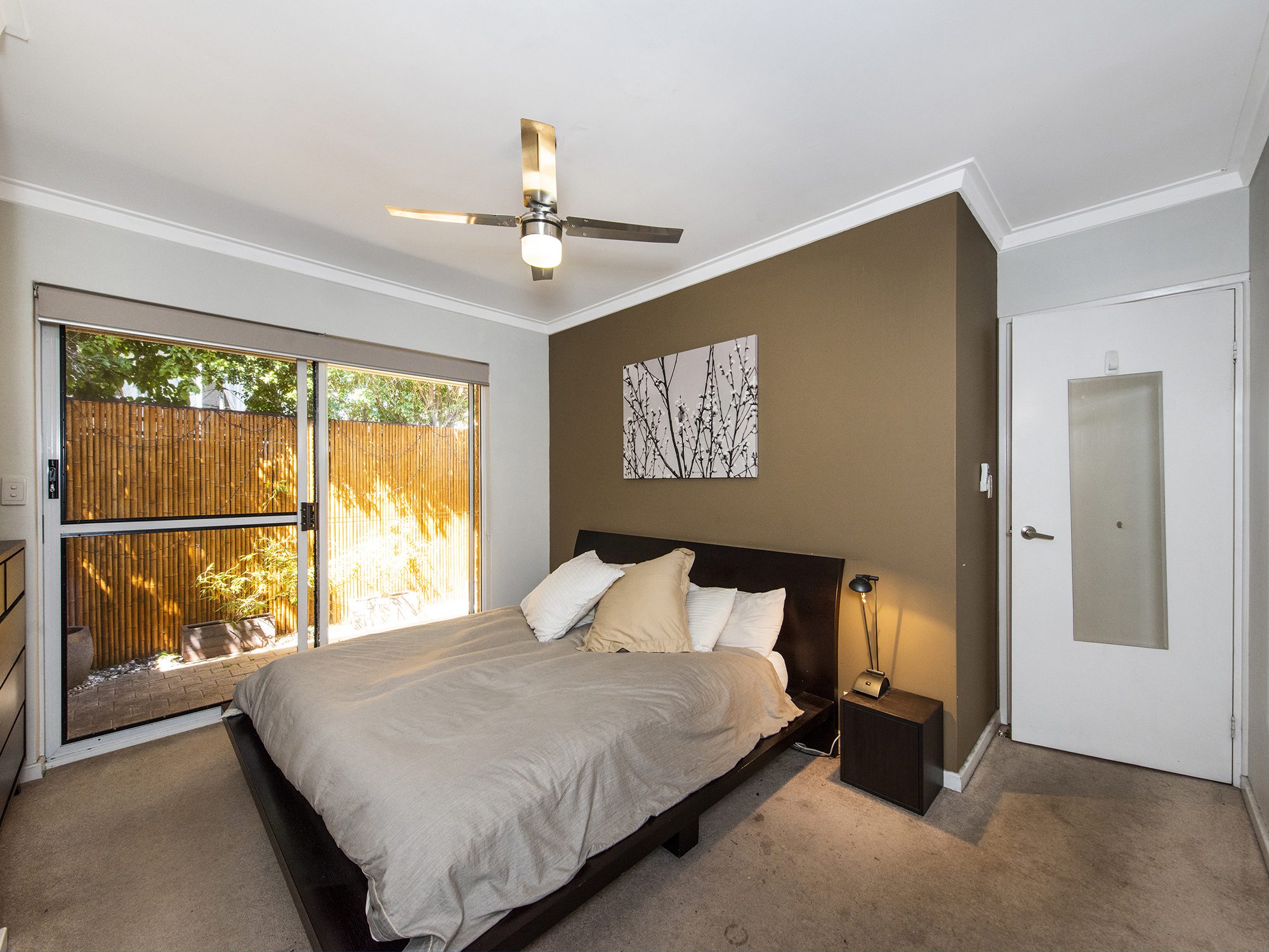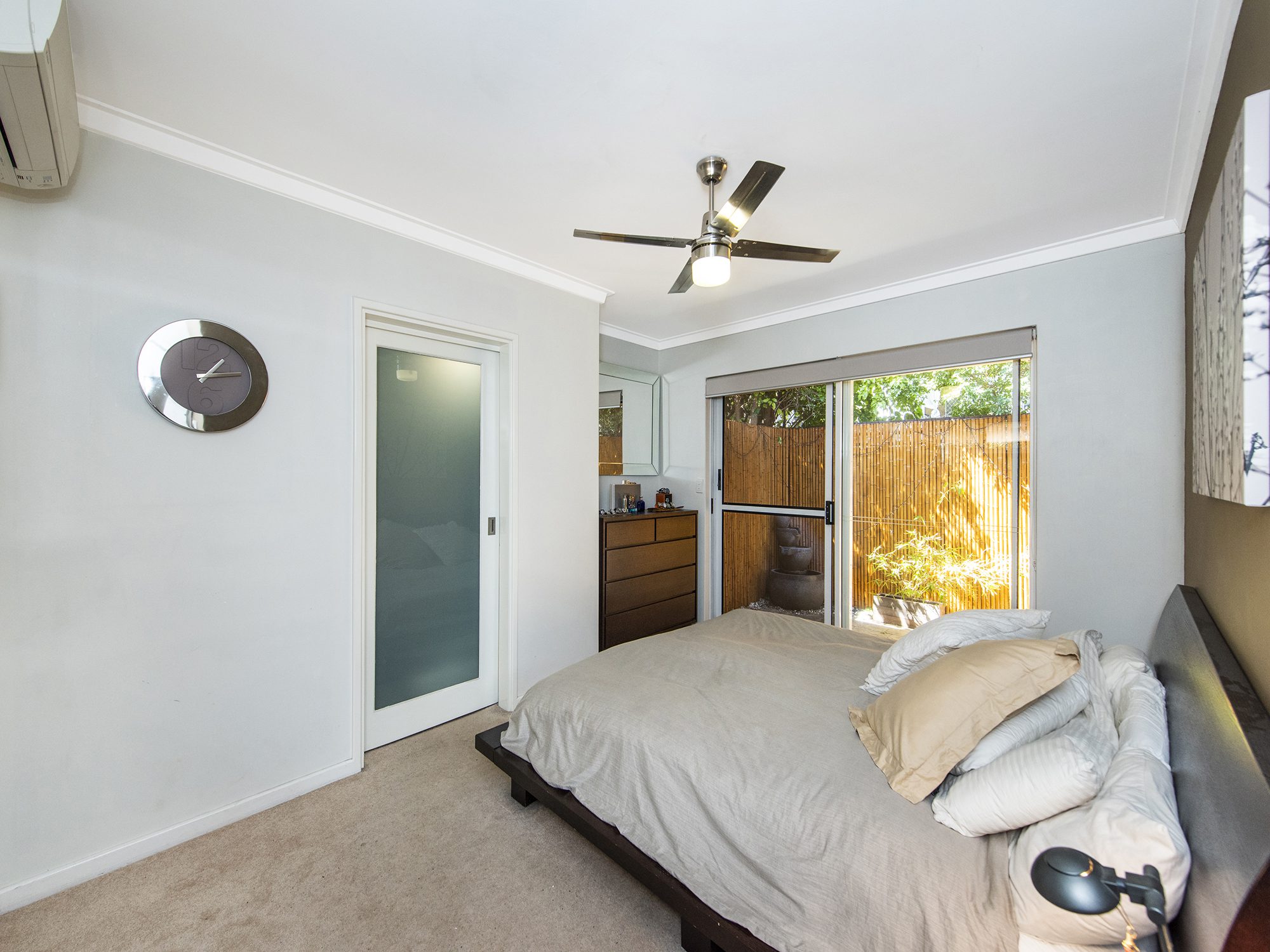 – Spacious master bedroom with a walk in robe, ceiling fan and direct access to outdoors