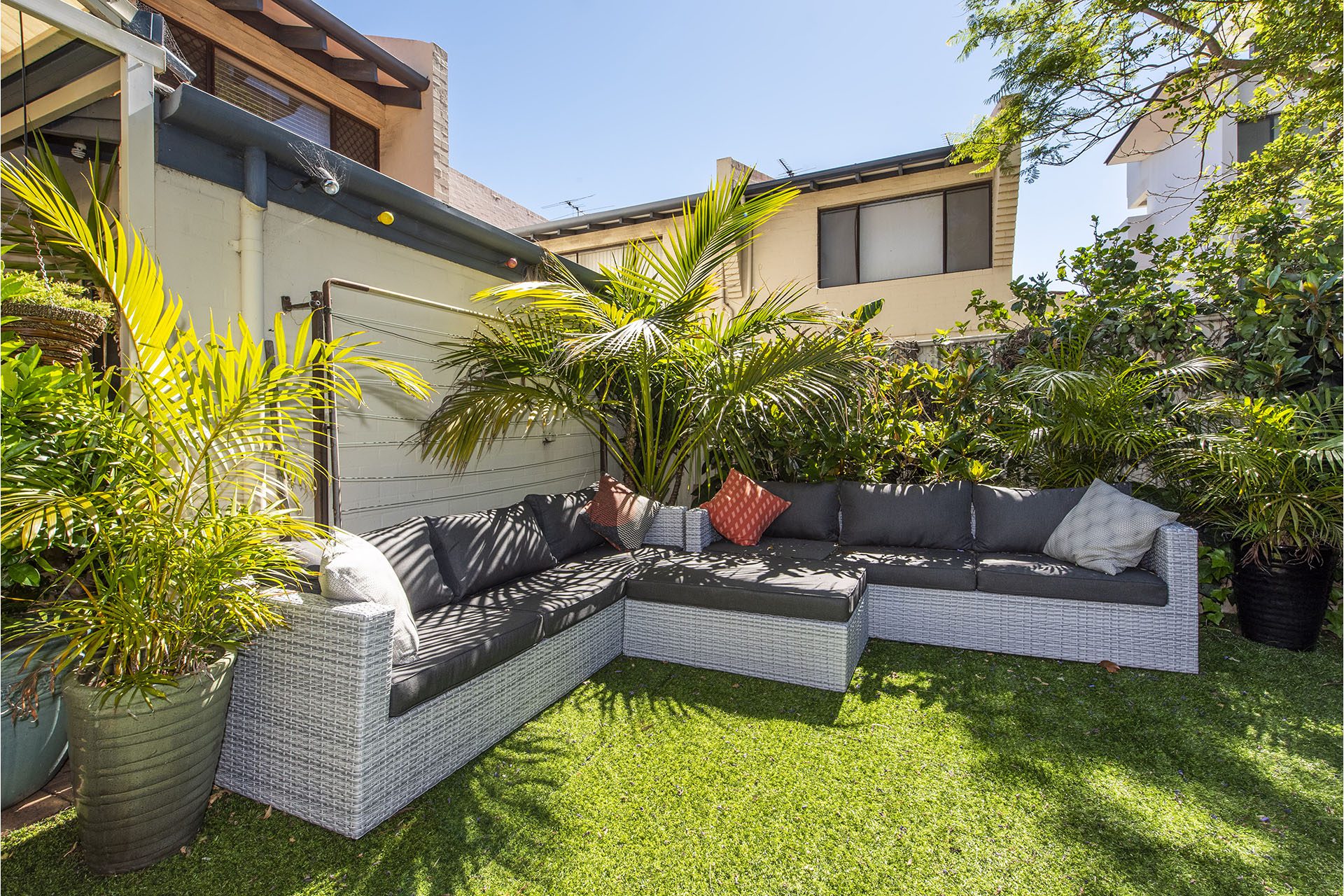 The lush green garden courtyard at the rear with large seating area and an adjoining gable roof patio area provides a perfect area for outdoor entertaining.