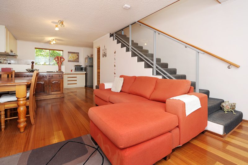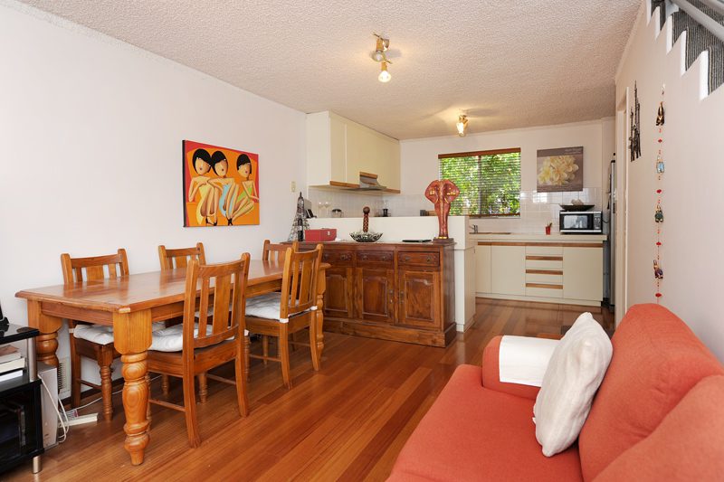 This property boasts two large bedrooms with a good sized third, an open living, dining and kitchen area, two generously sized courtyards, a balcony off the main bedroom with City glimpses, single garage with internal entrance and enough parking for up to three vehicles.