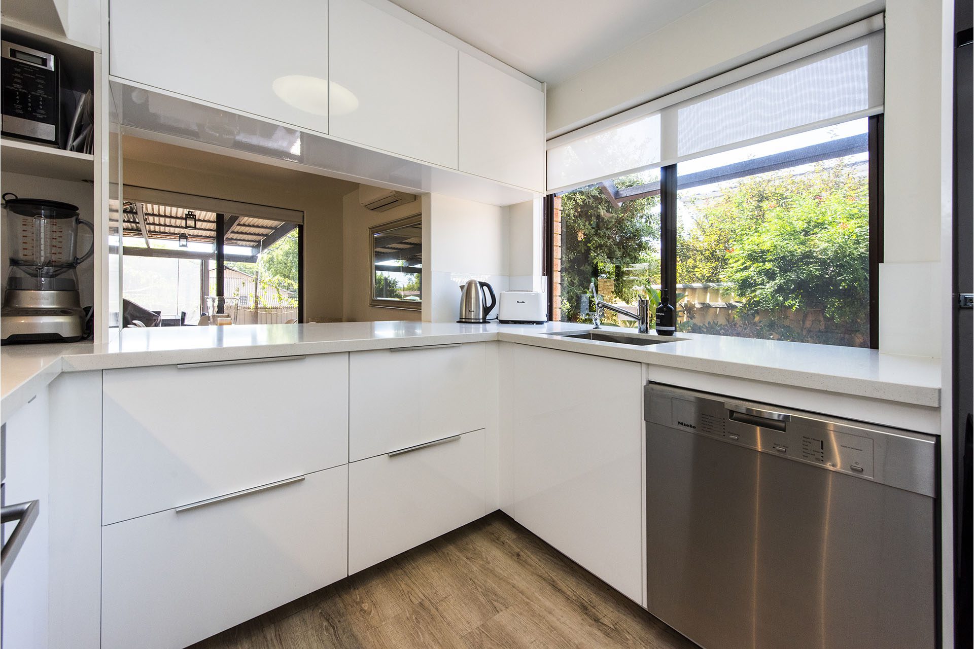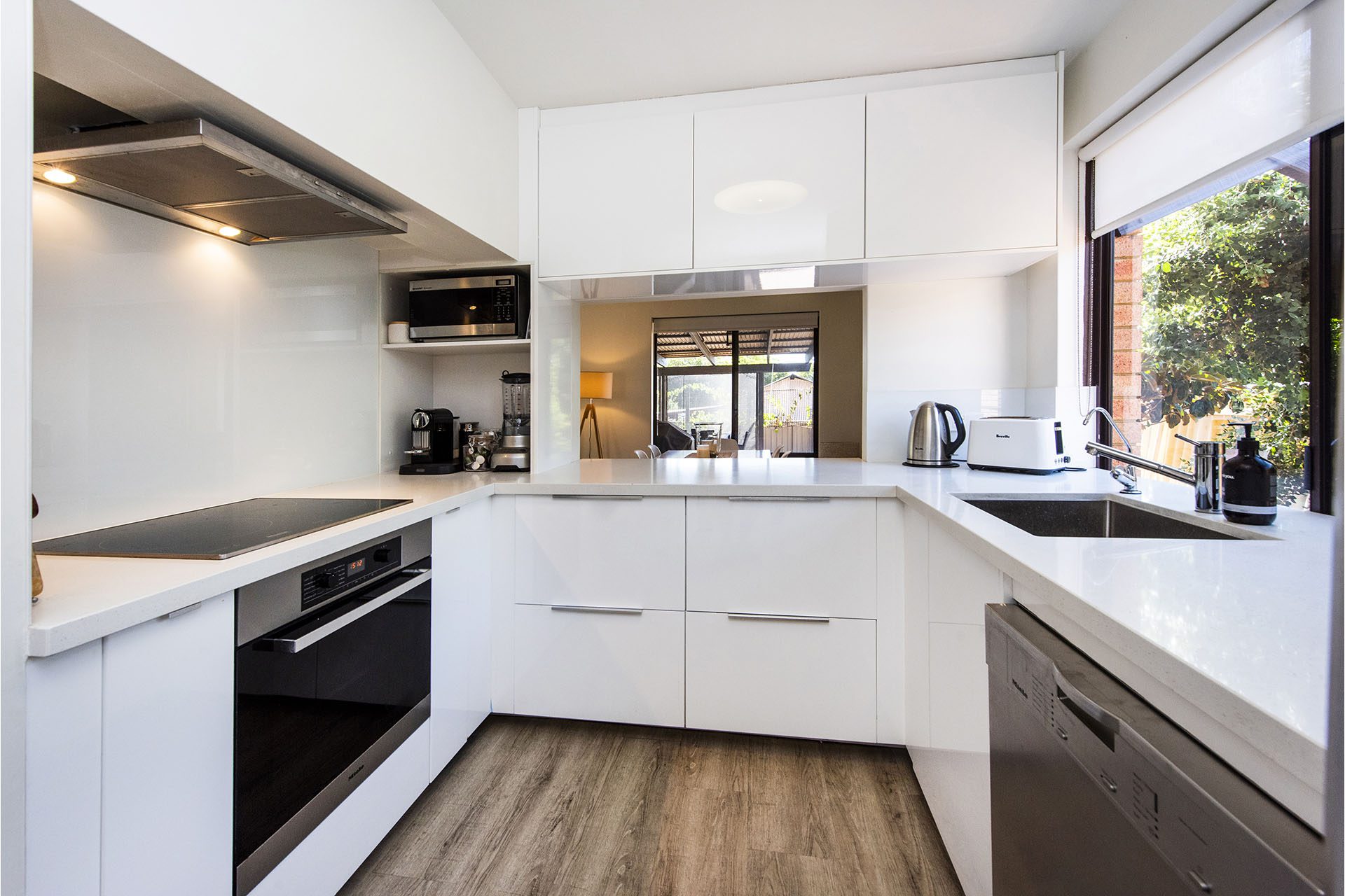 Downstairs features a spacious, light and bright living and dining area with a well-designed and fresh quality kitchen and laundry both renovated in crisp white and Caesarstone.