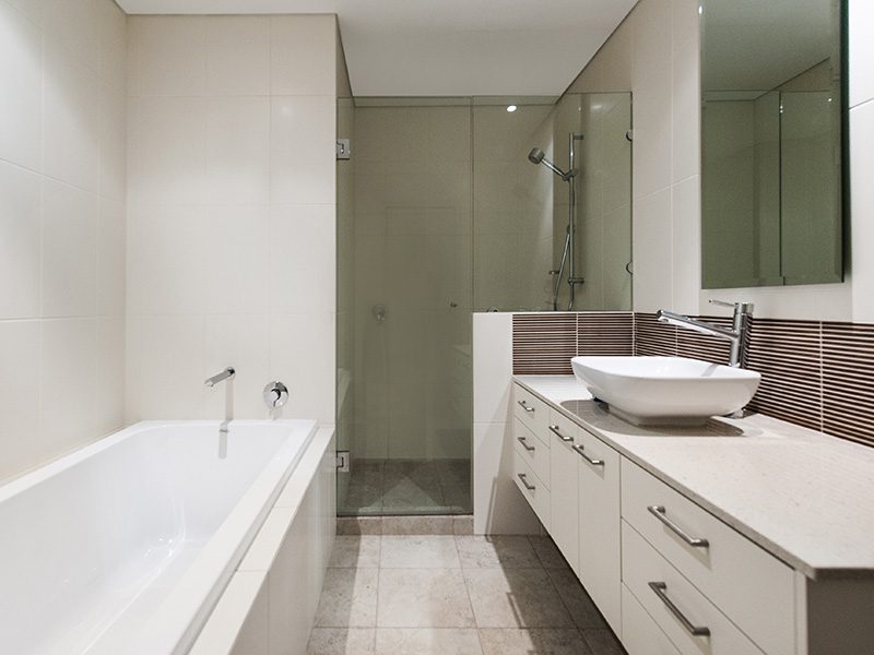 Family bathroom includes separate bath and separate shower, concertina laundry.